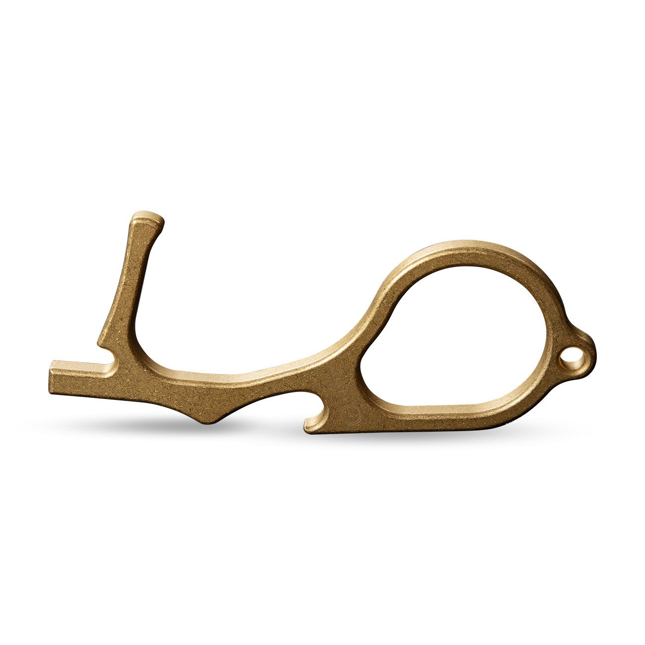 The MT-1 is a handy one-piece multi-tool that fits easily and unobtrusively into a pocket or bag, specifically designed to help battle COVID-19. It allows you interact with the world around you in a contactless way, opening doors and carrying items with ease. Its brass construction, being a copper alloy, gives it natural antimicrobial properties making it a near perfect tool in this crazy day and age.