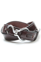 1 1/4" wide leather belt with nickel hoof pick closure, Havana leather. This havana leather hoof pick belt is made out of creased heavy weight English bridle leather. The nickel hoof pick is attached to the leather belt with two snaps so it is very easy to remove the hoof pick from the leather belt and use it to clean your horses hooves. Then just snap it back onto the havana leather belt and you are ready to go. This leather hoof pick belt is great at horse shows, around the barn, on trail rides and much more. Never be without a hoof pick when you need it with this handy stylish leather hoof pick belt.