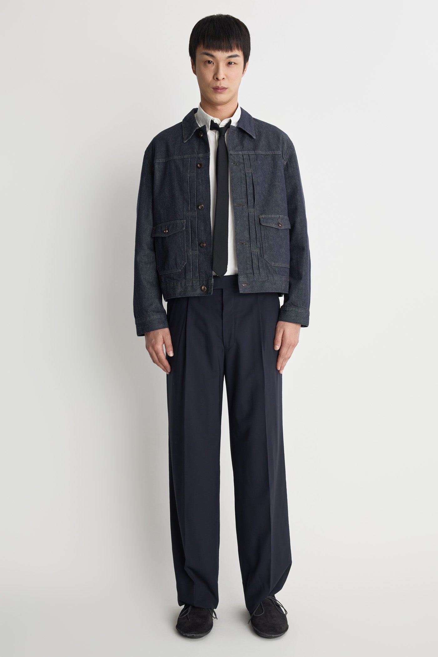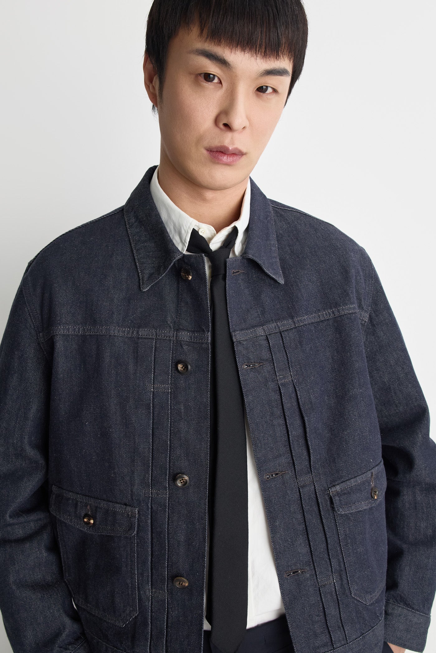This jacket offers a contemporary take on the timeless trucker design, featuring a bottom pocket that enhances both functionality and aesthetic appeal. With a classic regular fit, it gently drapes below the waist, delivering a relaxed yet refined silhouette. Its fluid construction ensures effortless comfort during everyday activities, making it a versatile wardrobe staple that complements a variety of looks.