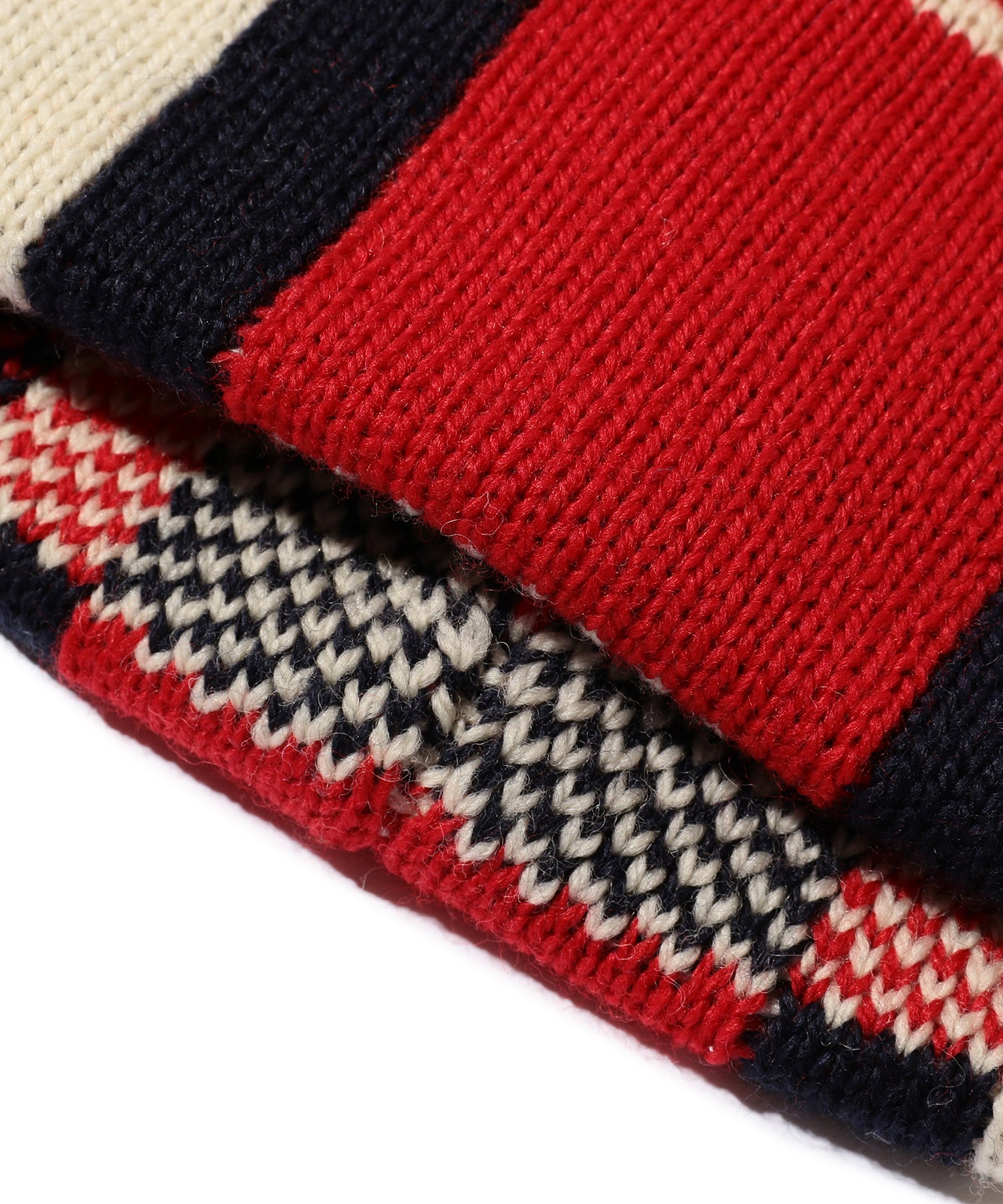 Beams Plus Wool Watch Cap Jacquard Stripe - White