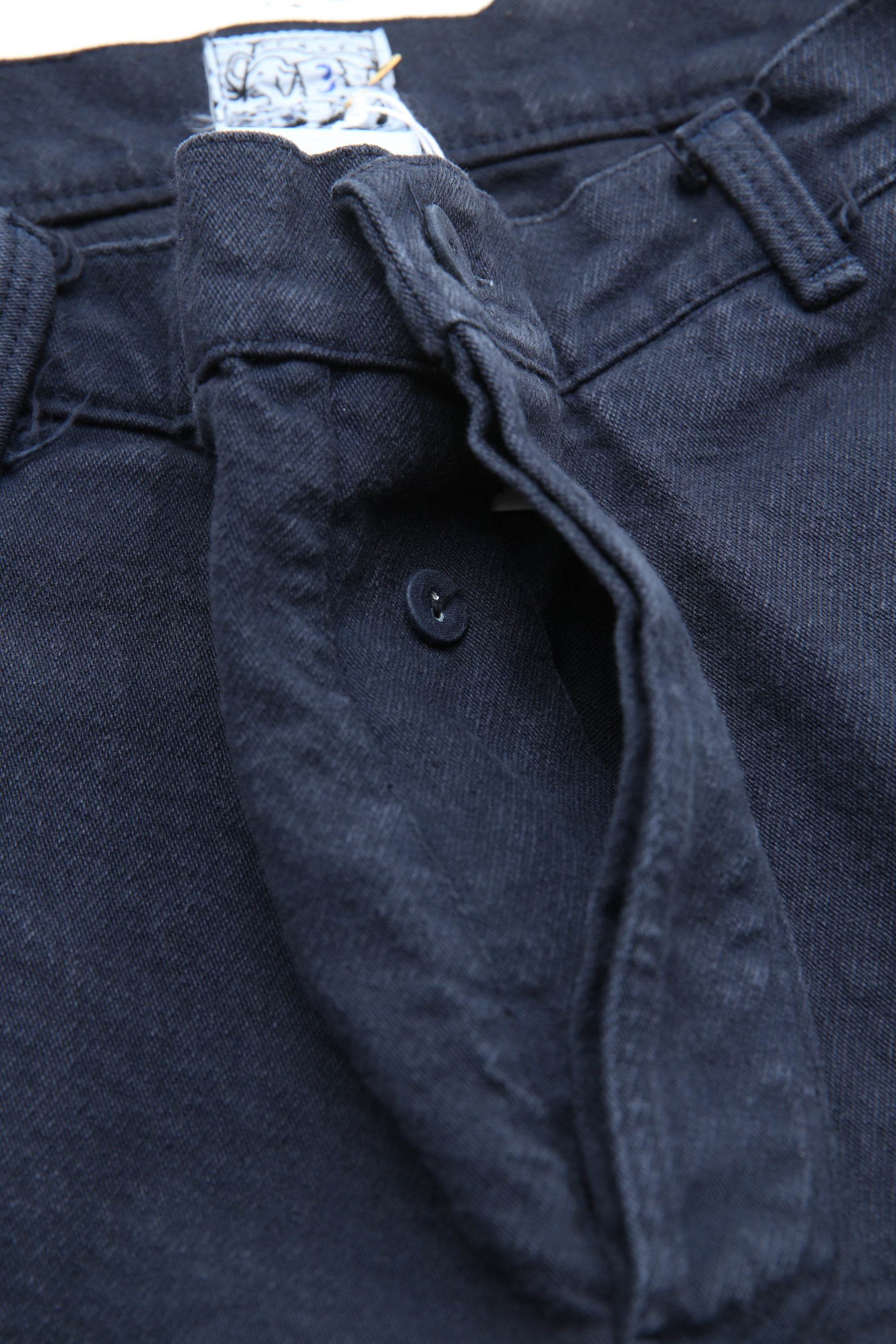 are sewn with all-cotton thread and finished with dyed cotton-covered metal buttons,