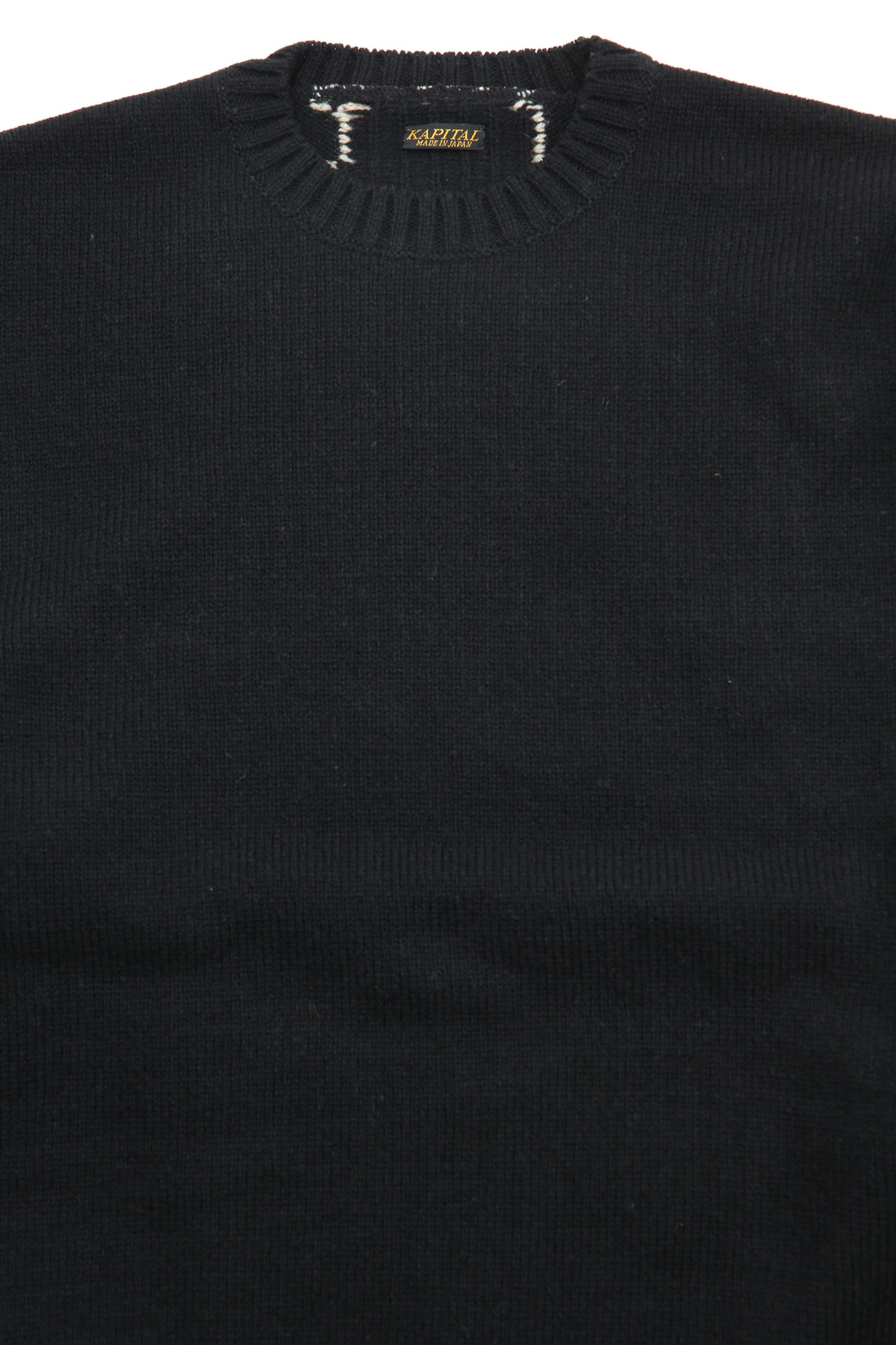 Kapital 5G Wool Knit BONE Crew Sweater - Black
