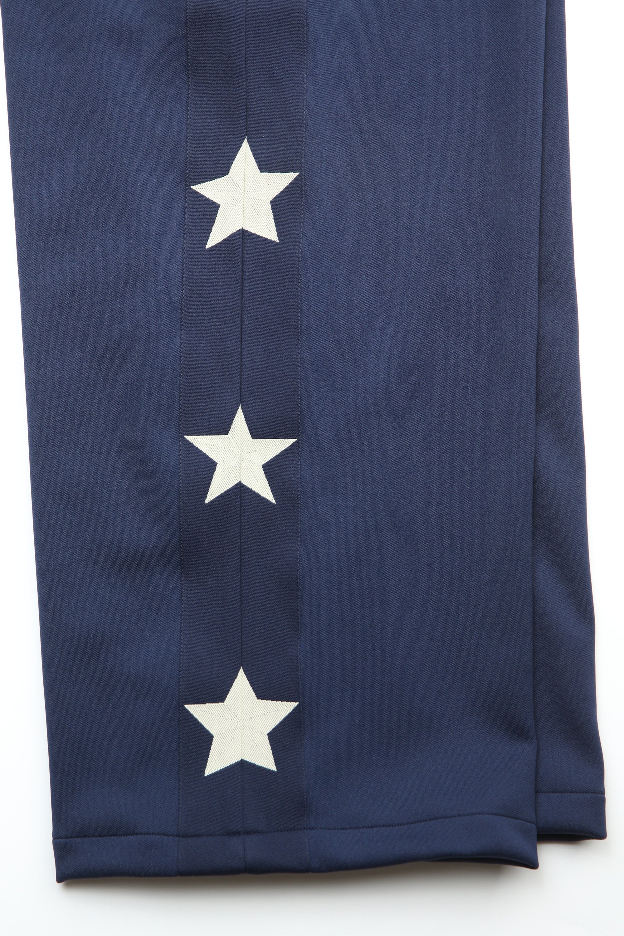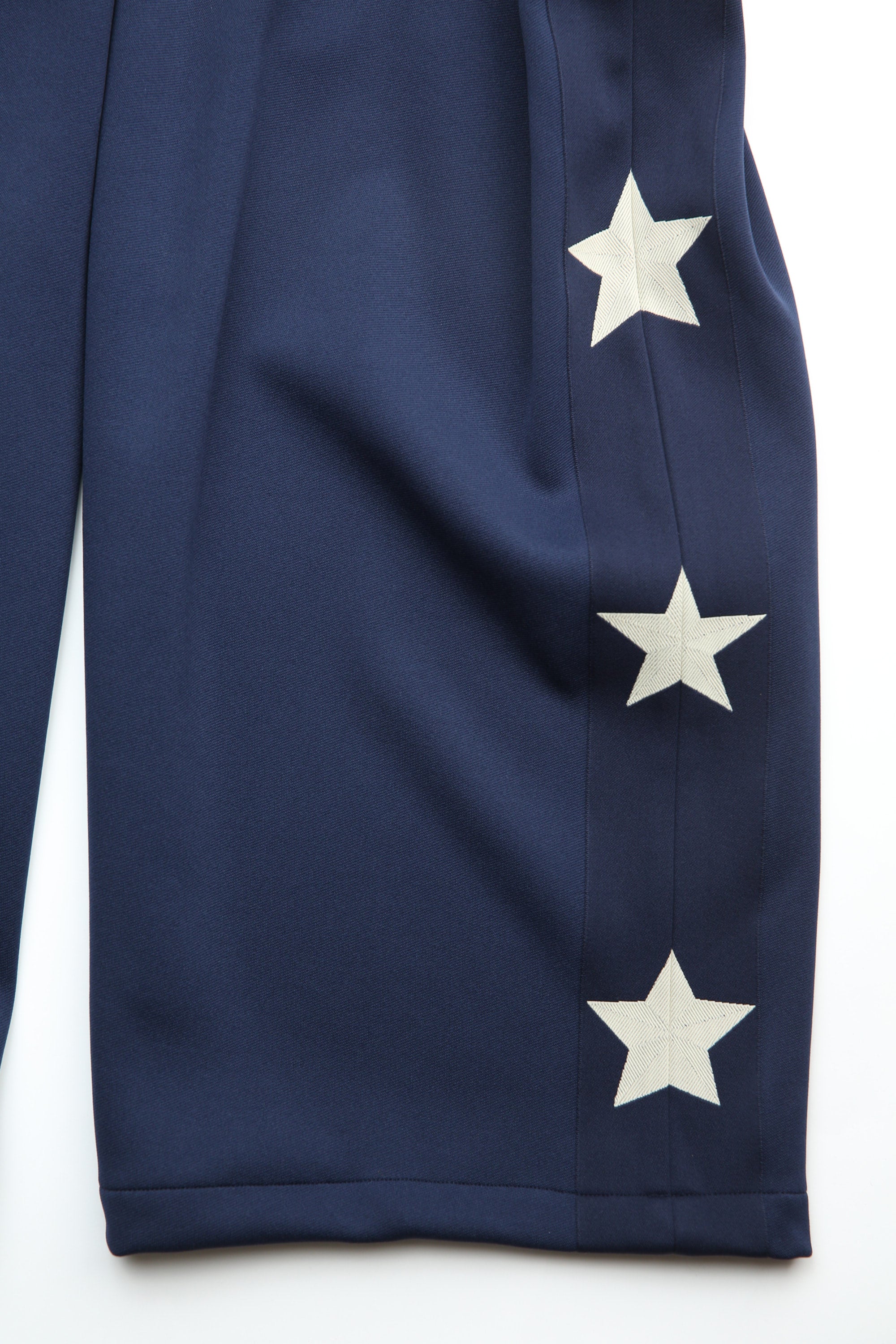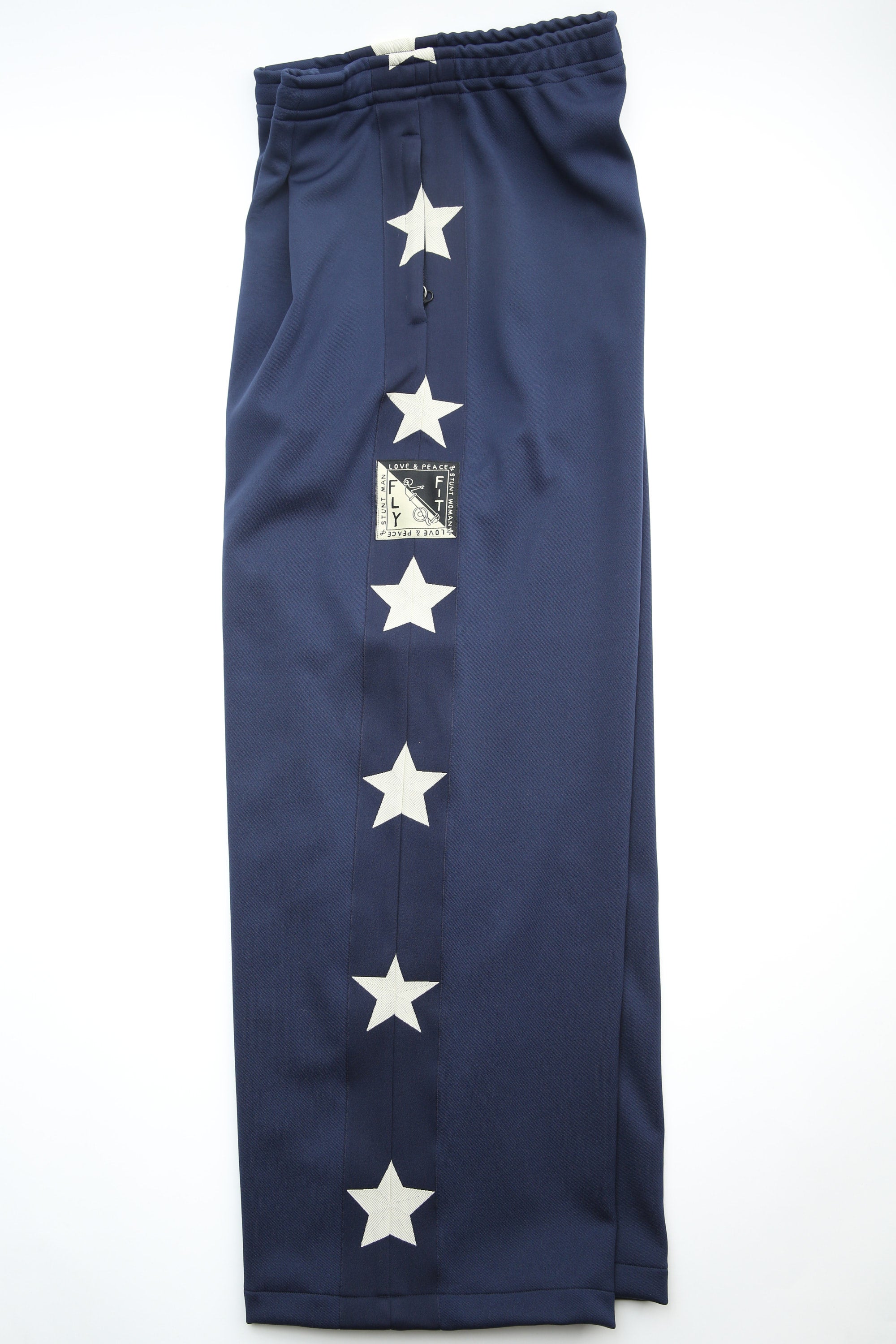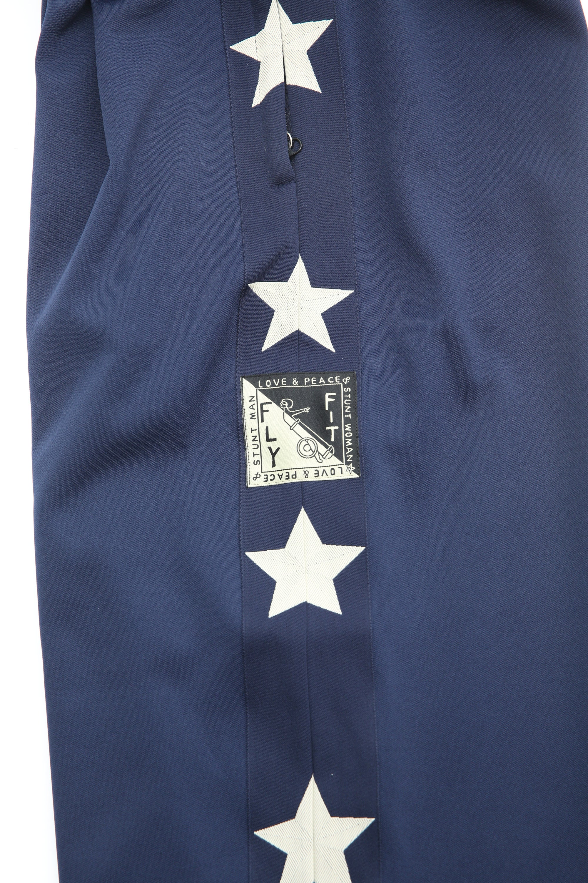 Unleash your inner stuntman (or woman) with Kapital's Smooth Jersey Stantman & Woman Baggy Track Pants! Made from soft jersey material, these sporty and stylish track pants feature stars along the sides and a relaxed fit for ultimate comfort. With a single pleat at the waist, these pants provide a sleek and compact look. Ready for action? Let's go!