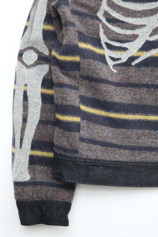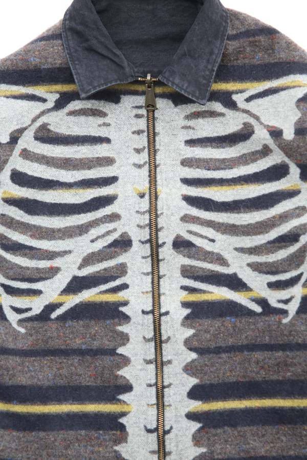 Introducing the perfect jacket for the stylishly daring. Our Kapital 14oz Denim Bone Lining Reversible Zip-Up Work Jacket features a unique skeleton motif that's perfect for those wanting to make a statement. With its reversible design, you can have two looks in one, making it a versatile and practical addition to your wardrobe. So go ahead, be bold and show off your unique style with this reversible jacket.