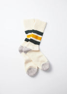 RoToTo Coarse Ribbed Old School Socks - Dark Green/Yellow