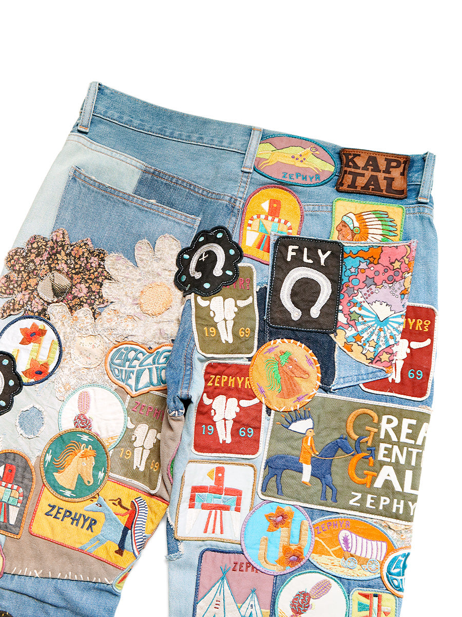 Kapital 12.5oz Denim 5P RAT Flare Patch Pants (ZEPHYROS INSANE Remake) - Indigo