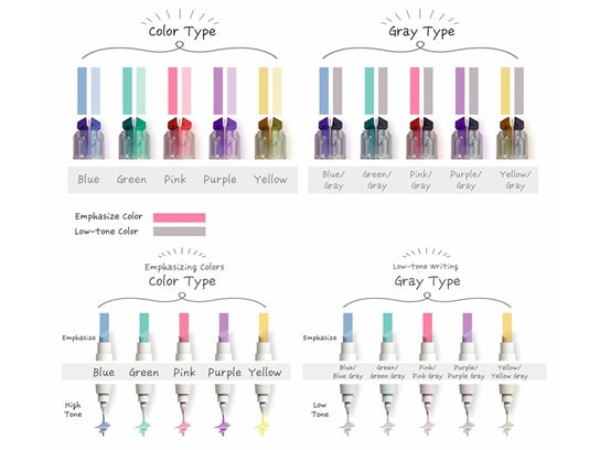 Kokuyo Mark+ 2 Way Marker Pen - 5 Color Set A