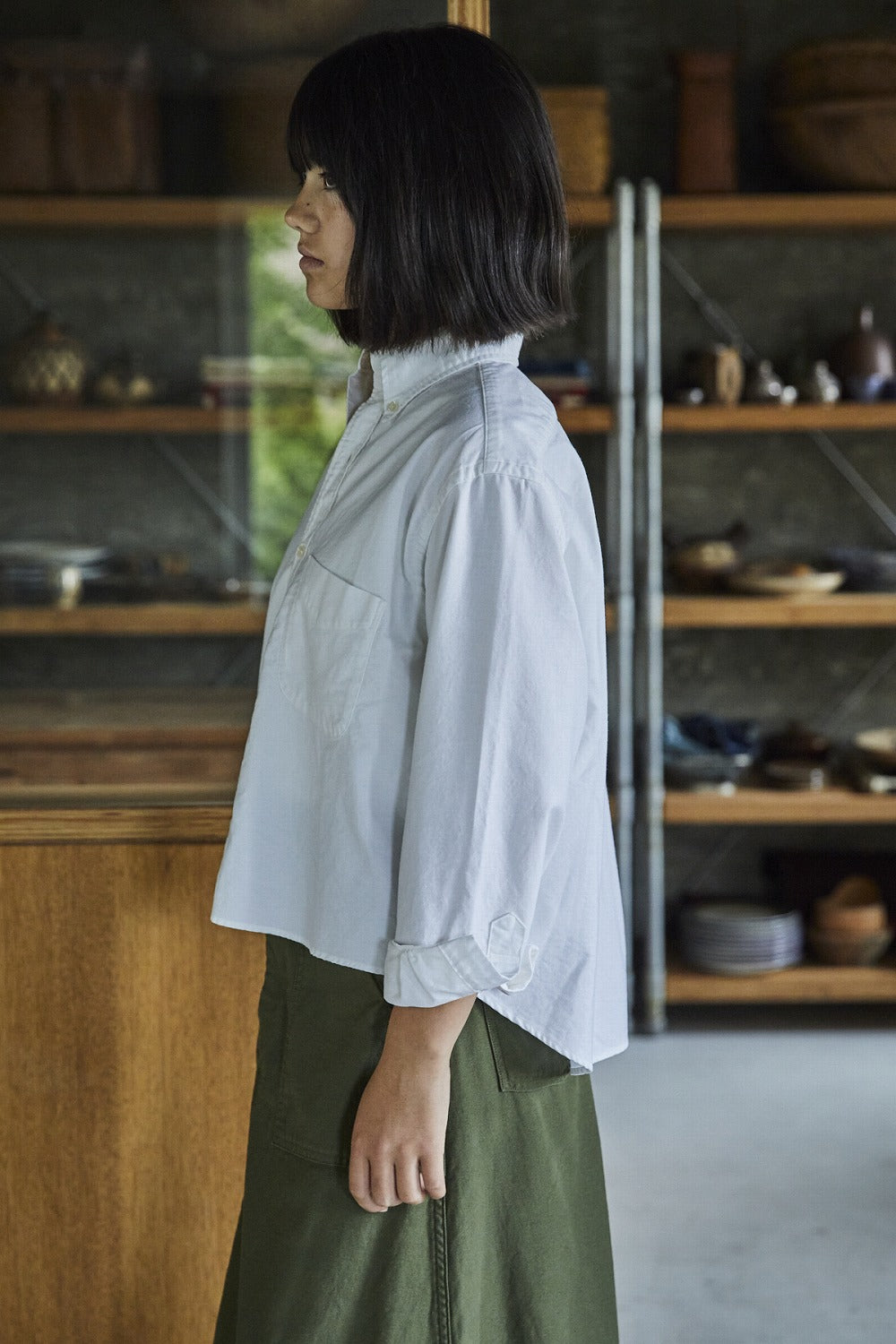 orSlow Women's Short Button Down Shirt - White