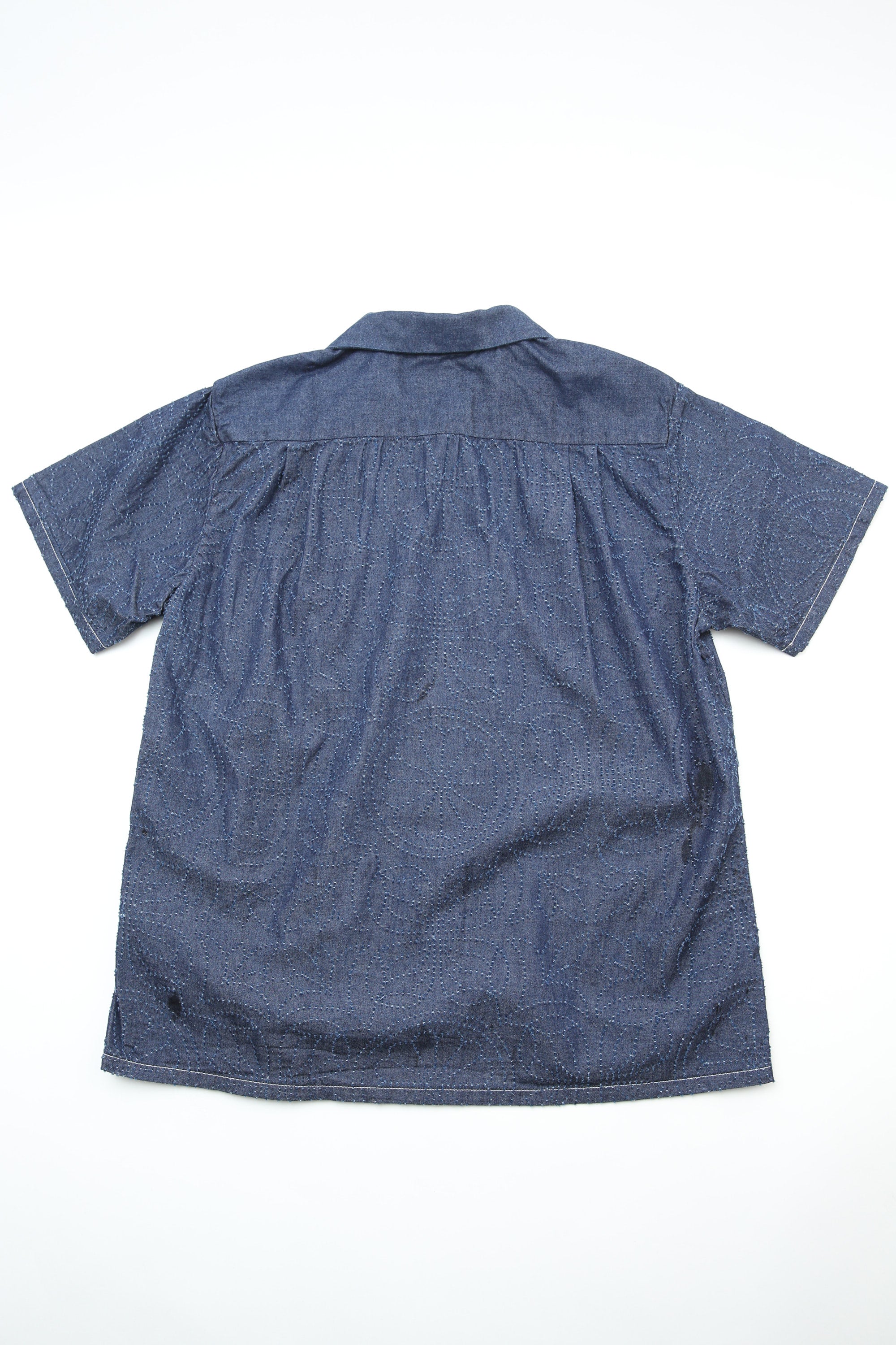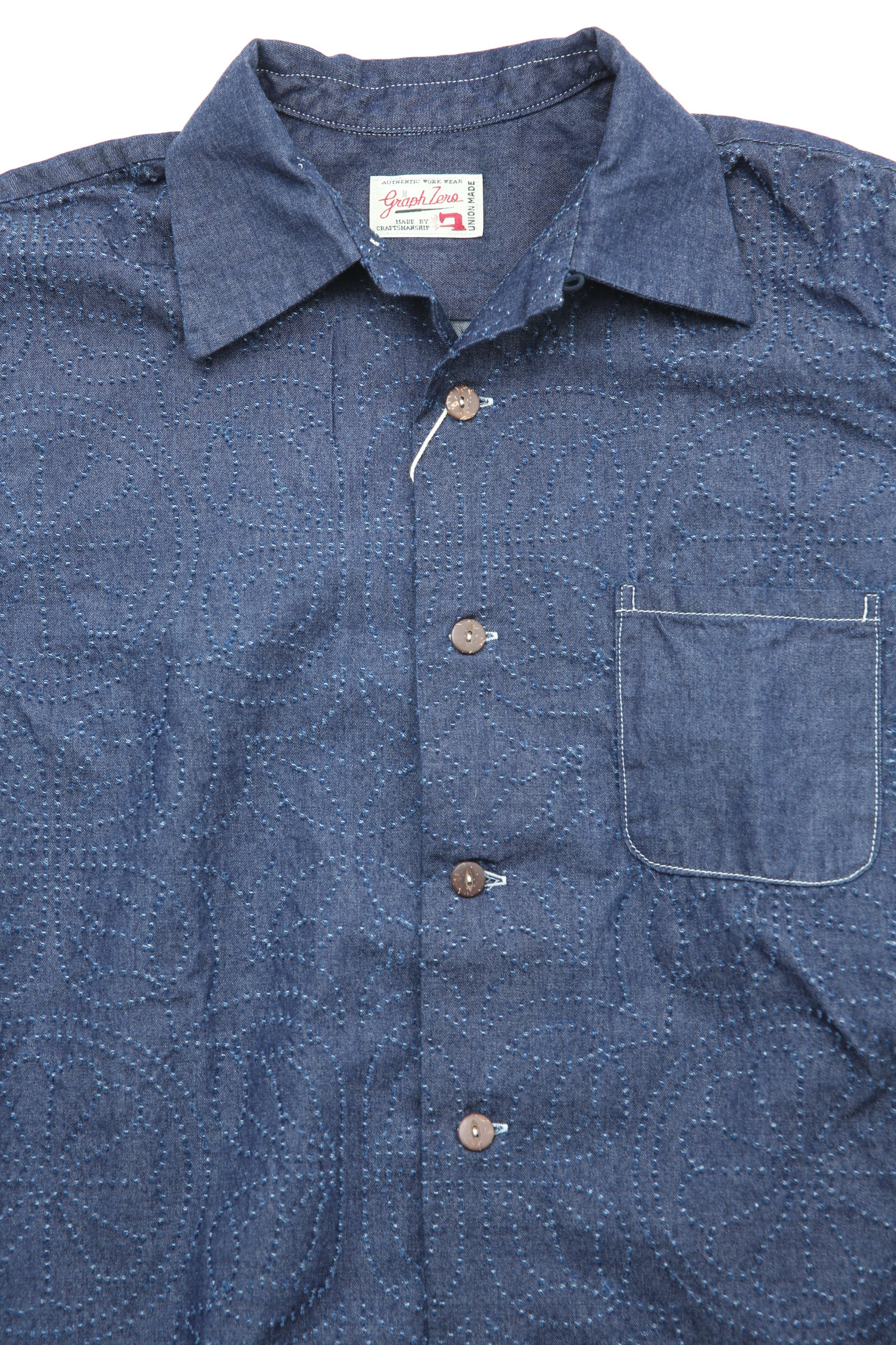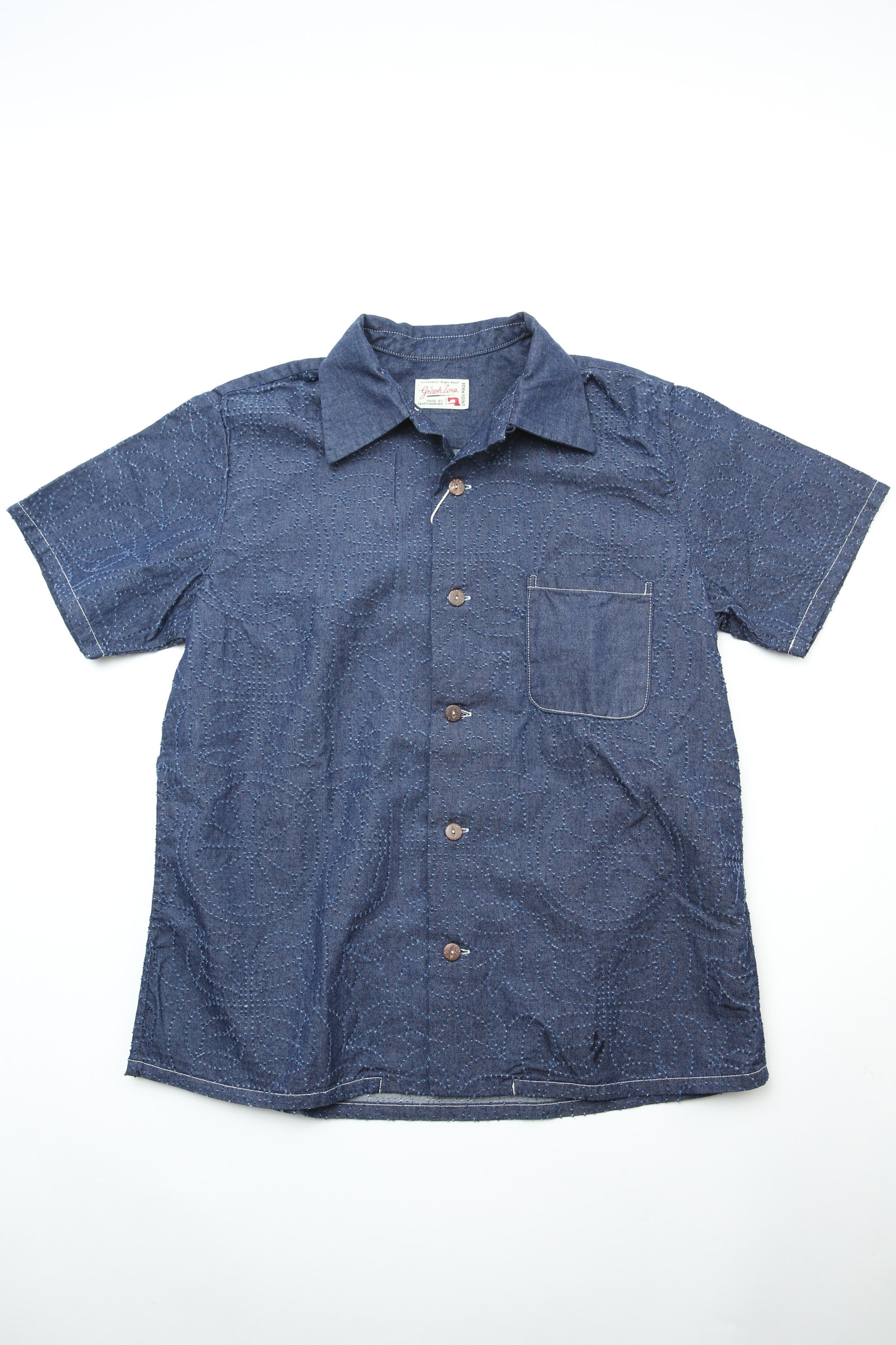 Graph Zero's signature Aloha shirt reimagined with meticulous craftsmanship. This piece features a proprietary fabric developed exclusively by Graph Zero—designed to age beautifully and reveal character over time. The construction speaks to quality: bag-sewn seams remain hidden from the front, while a refined bag collar adds understated sophistication. A relaxed box silhouette means no fussing with length—simply button and wear. The back yoke features elegant box tucks and gathering for subtle movement and visual interest. Effortless style that rewards you with every wear.