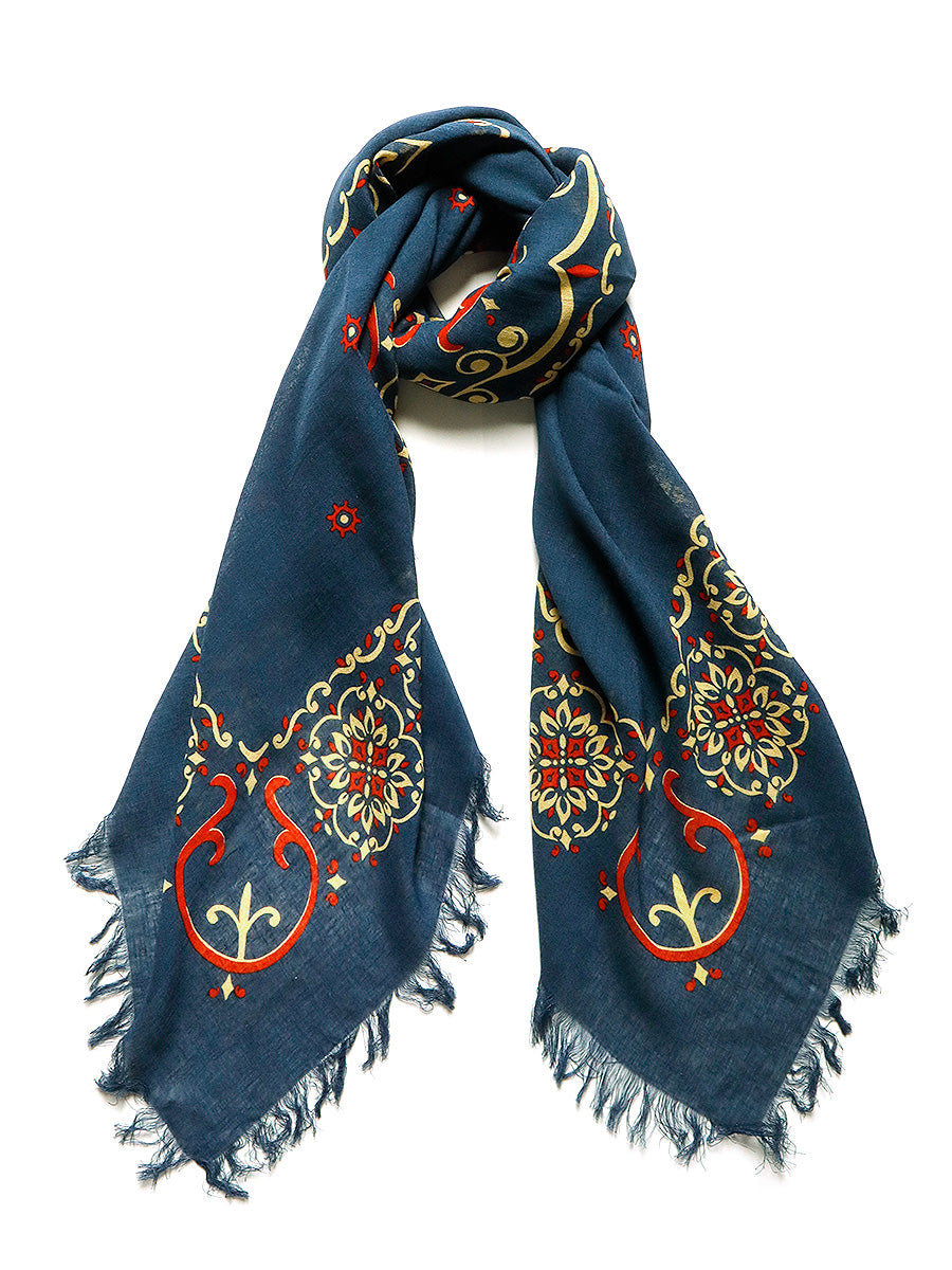 Kapital Linen Rayon Fringe Stole (HAVANANAJA) - Navy