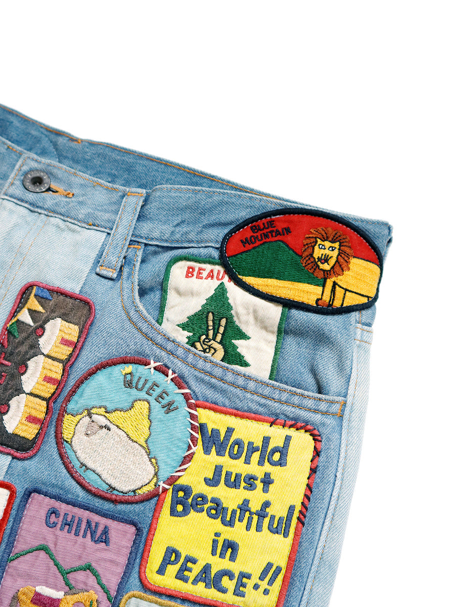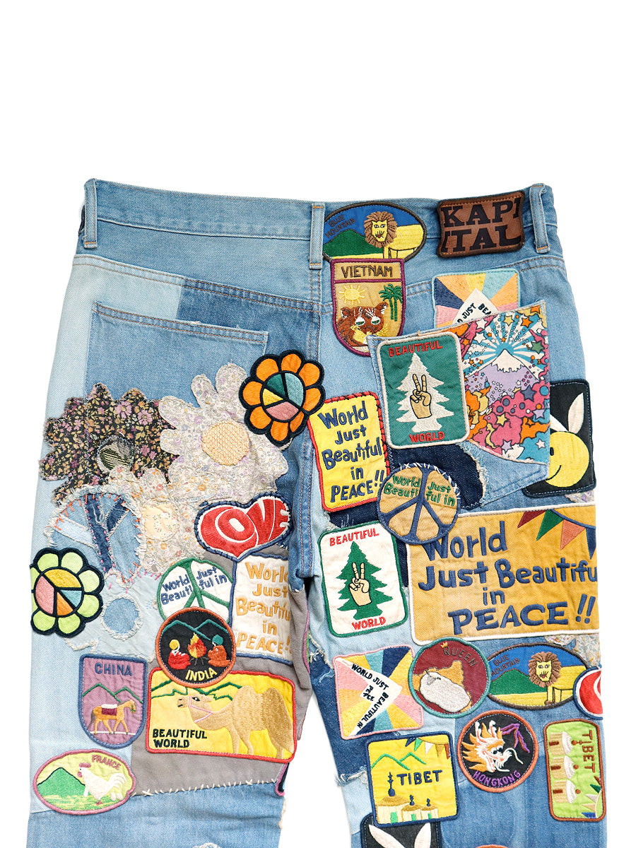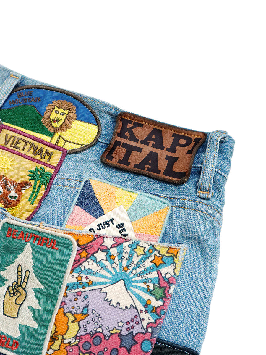 Kapital 12.5oz Denim 5P Rat Flare Patch Pants (BEAUTIFUL WORLD INSANE Remake) - Indigo (processing)