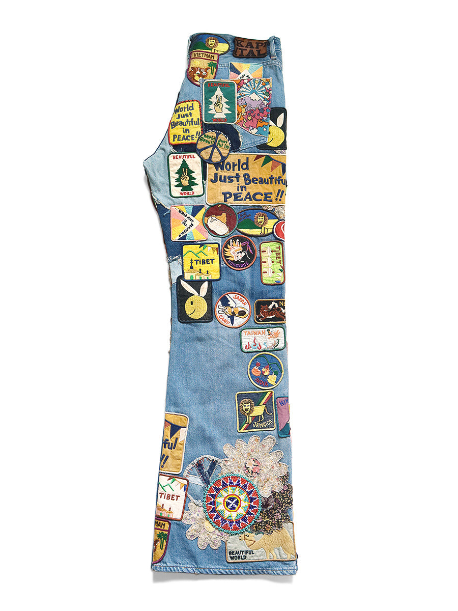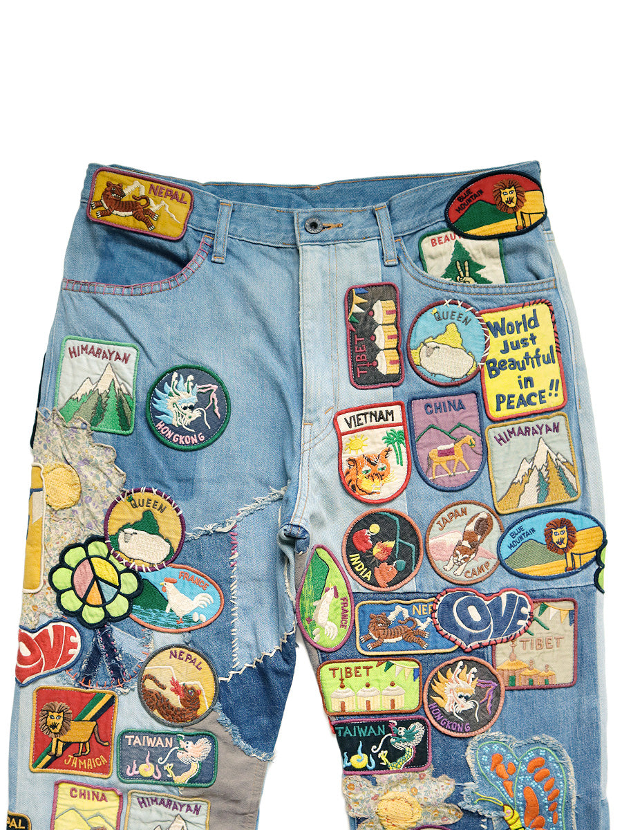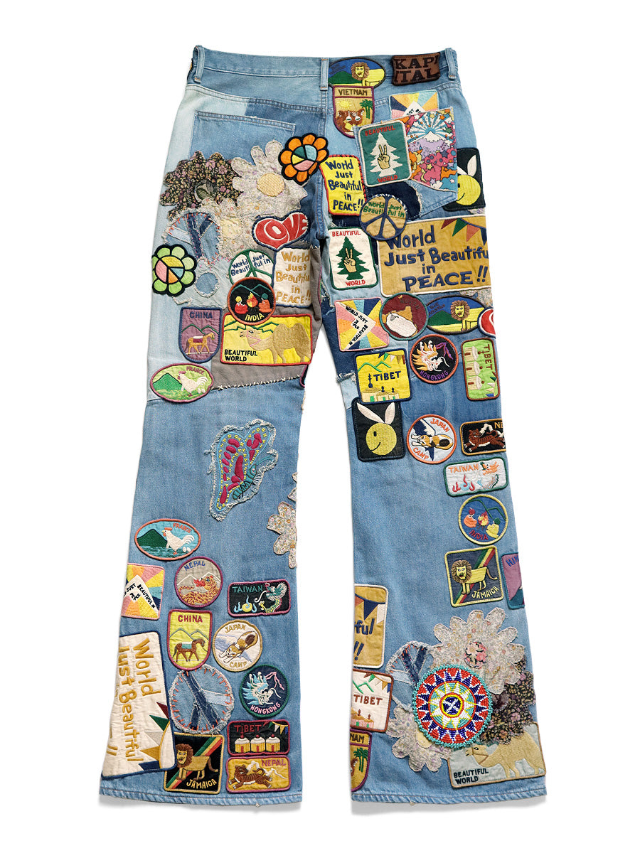 Kapital 12.5oz Denim 5P Rat Flare Patch Pants (BEAUTIFUL WORLD INSANE Remake) - Indigo (processing)