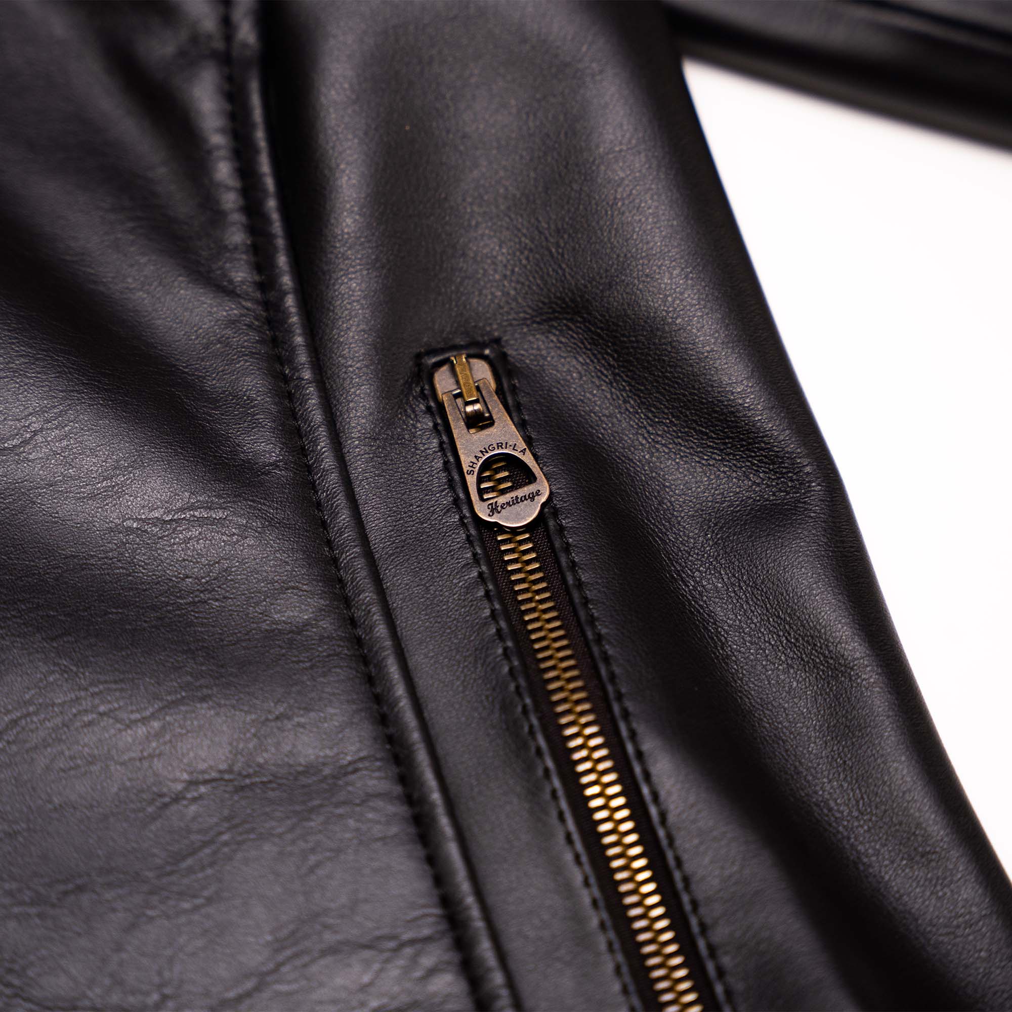 Shangri-la Heritage - "Chiodo" Fur Collar Black Steerhide Leather Jacket
