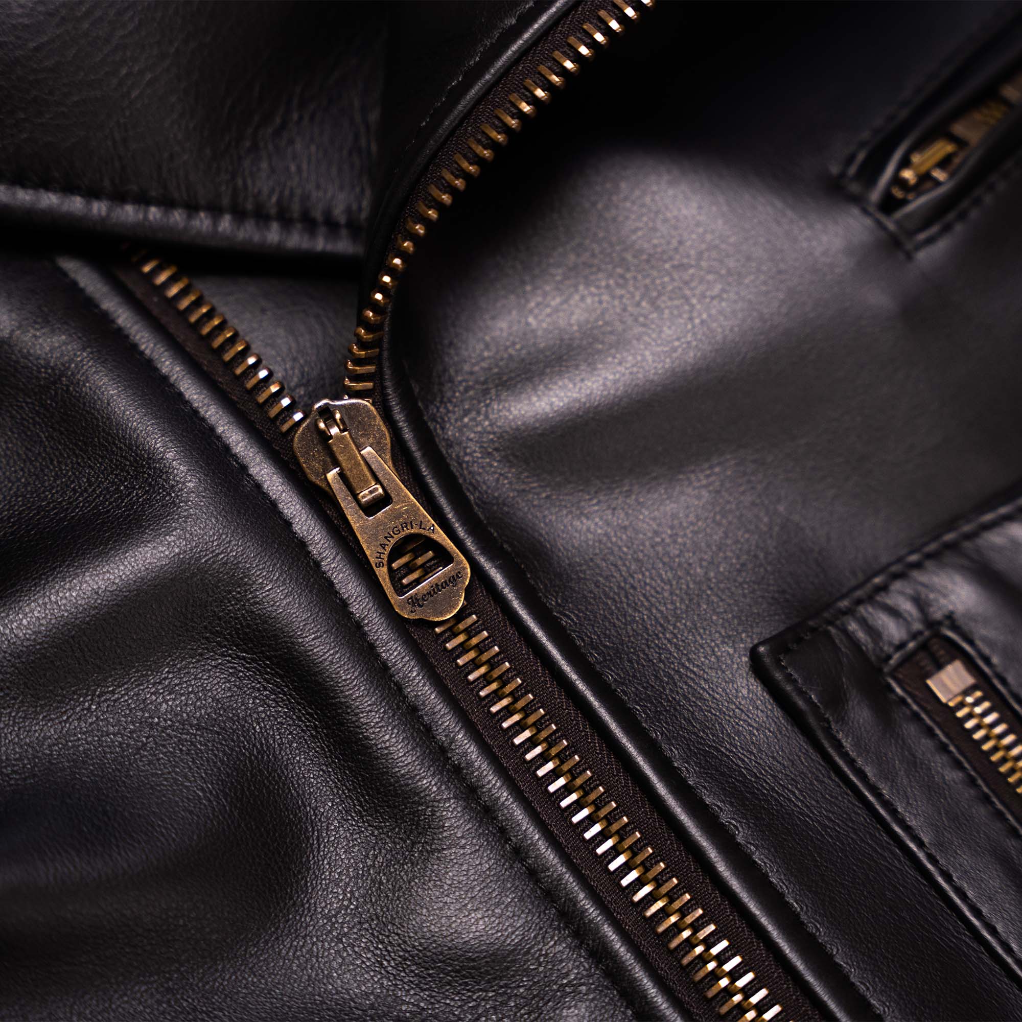 Shangri-La Heritage “Varenne” Fur Collar Black Leather Jacket