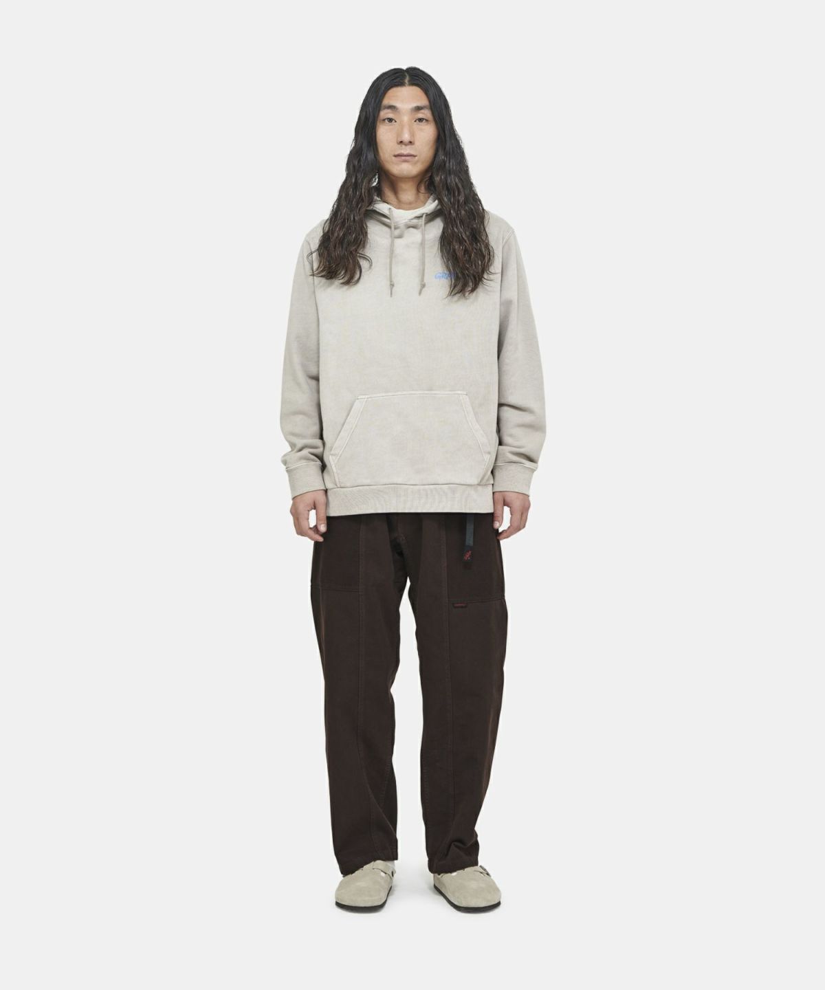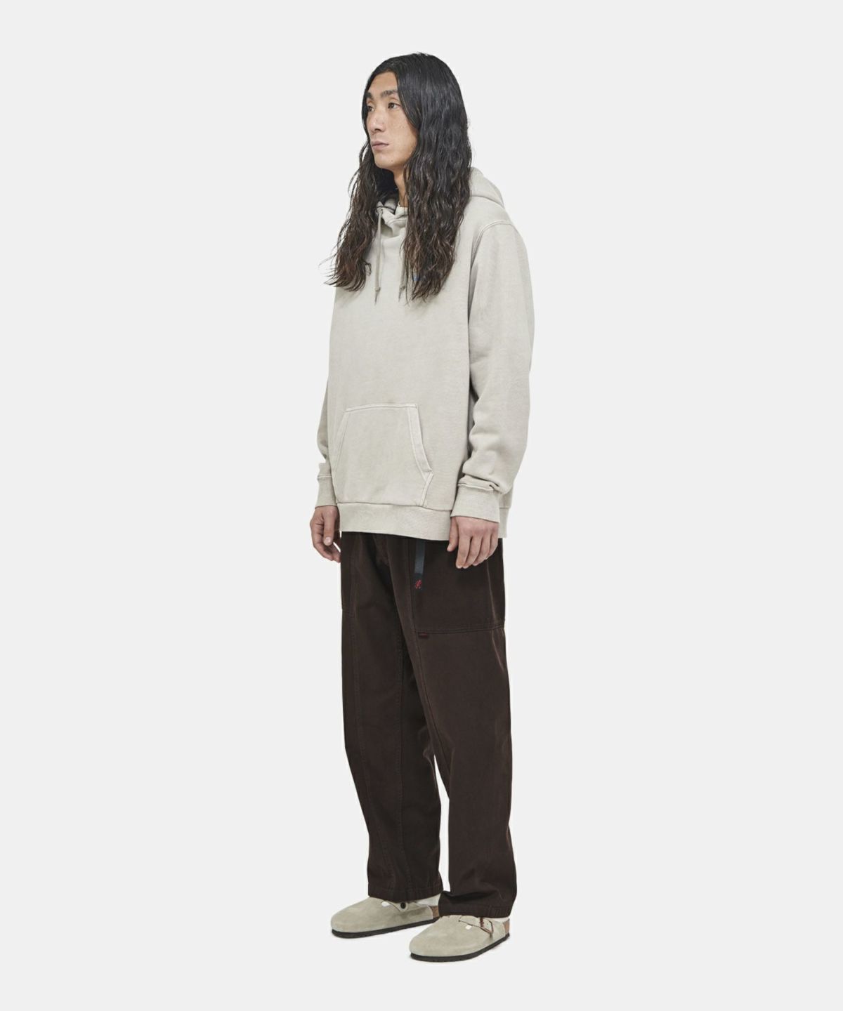 These pants are able to hold gadgets to suit modern lifestyles, while maintaining the functionality during climbing that serves as the brand's roots. Highlighted by large pockets extending from the front to the back, the silhouette has a comfortable looseness. Tough canvas is used for these pockets, while the contrast between the two types of materials through garment dyeing is another notable feature. Also, the webbing belt with the brand logo on the right side is useful outdoors and in the city, as it can hold keys and bottles. They are made of 100% organic cotton twill with high durability, tension, and stiffness that can even withstand strenuous movement and dyed to give character to their appearance.