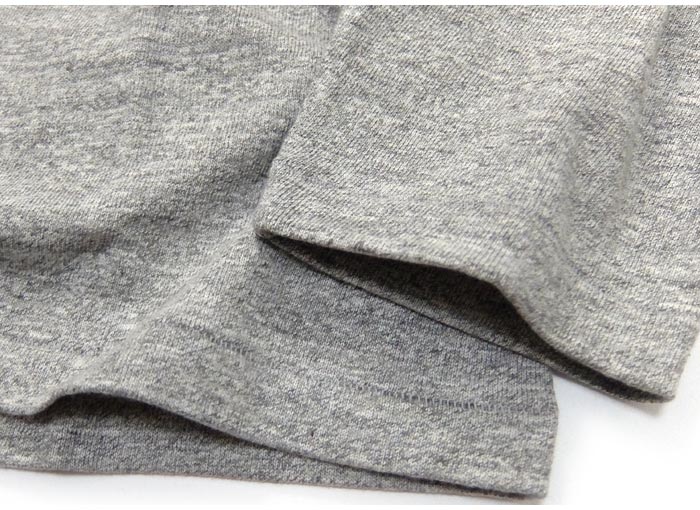 It is a classic body of a wearhouse woven with an old-fashioned low-gauge knitting machine that is said to be "rarer than a hanging knitting machine". This fabric, which is knitted with No. 12 uneven yarn to create a unique shadow, is called a shadow border, and even though it is plain, it is faintly uneven like a horizontal stage.