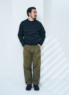 Our extra heavyweight T-shirt series is made of two #10 yarns twisted together. We use a yarn called "open-ended yarn" or "air-spun yarn," which is twisted and spun using only the power of air. This spinning method makes it possible to spin only thick staple fibers, which is usually very difficult, resulting in yarns with a slubby texture and containing the perfect amount of air, giving the fabric a rare dry texture. The #10 yarn, which is already very thick for jerseys, is further refined into a double yarn (equivalent to #5 yarn) and this jersey fabric is woven with threads that are actually strong enough to make heavy denim with. The resulting fabric is rough and extremely durable. Also, unlike usual sweat fabric, there is no pile on the back so it can be worn for a longer portion of the year.