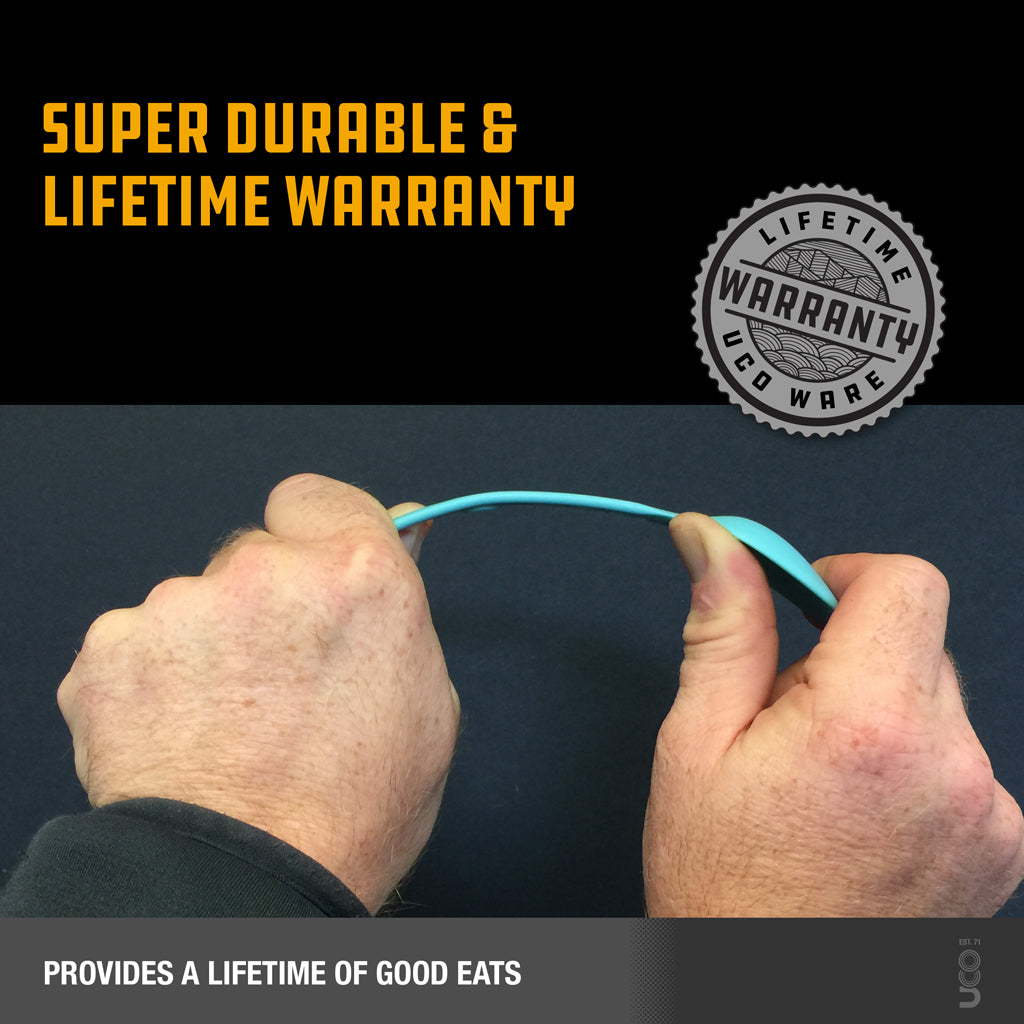 The ultimate in shape shifting, The Switch Spork stores compact but transforms into a dedicated spoon, fork and knife, or telescopes together to form an extra-long utensil ideal for deep walled containers like freeze dried meals in bags. Whether hiking in the Cascades, picnicking at the beach, or fueling up at the office UCO sporks make out-of-home meals more enjoyable. UCO Ware has a Limited lifetime warranty.