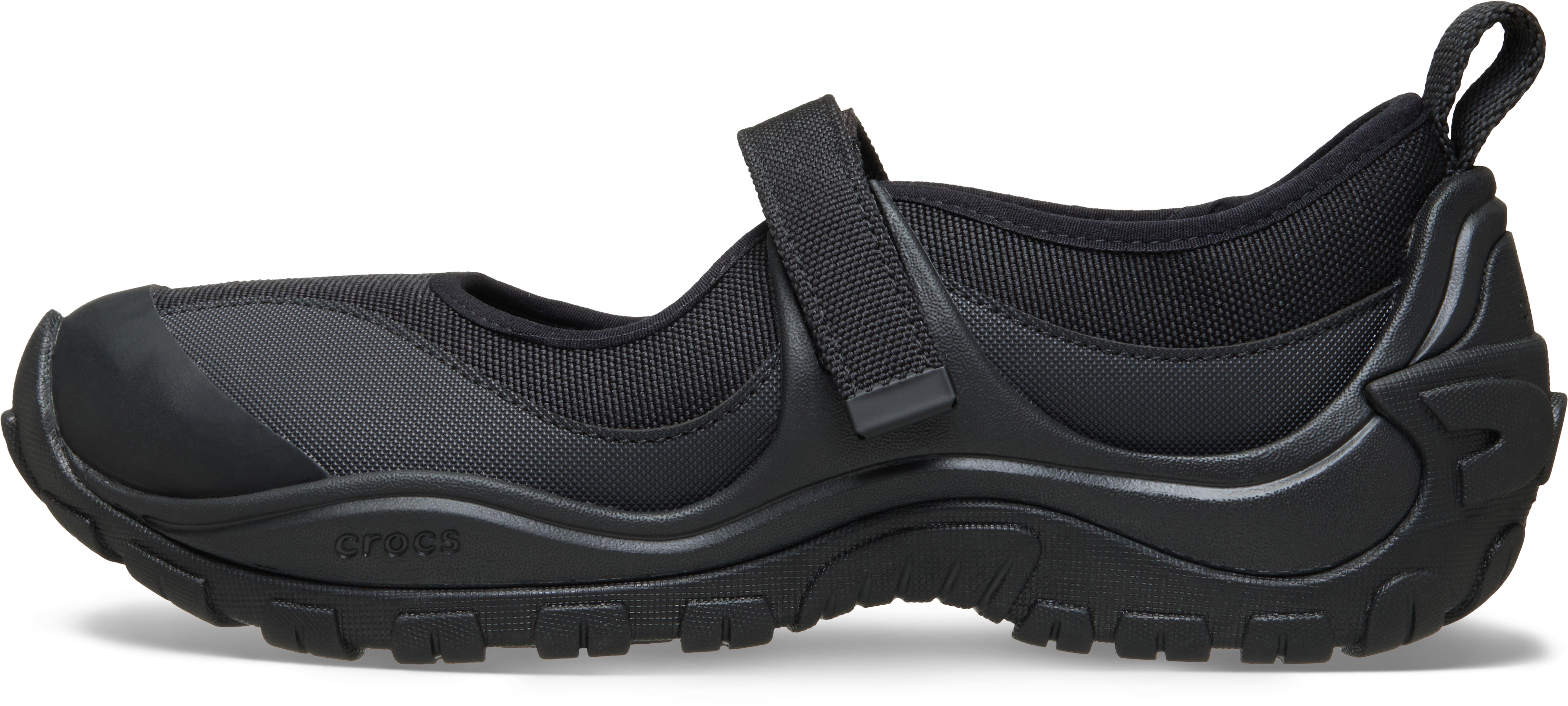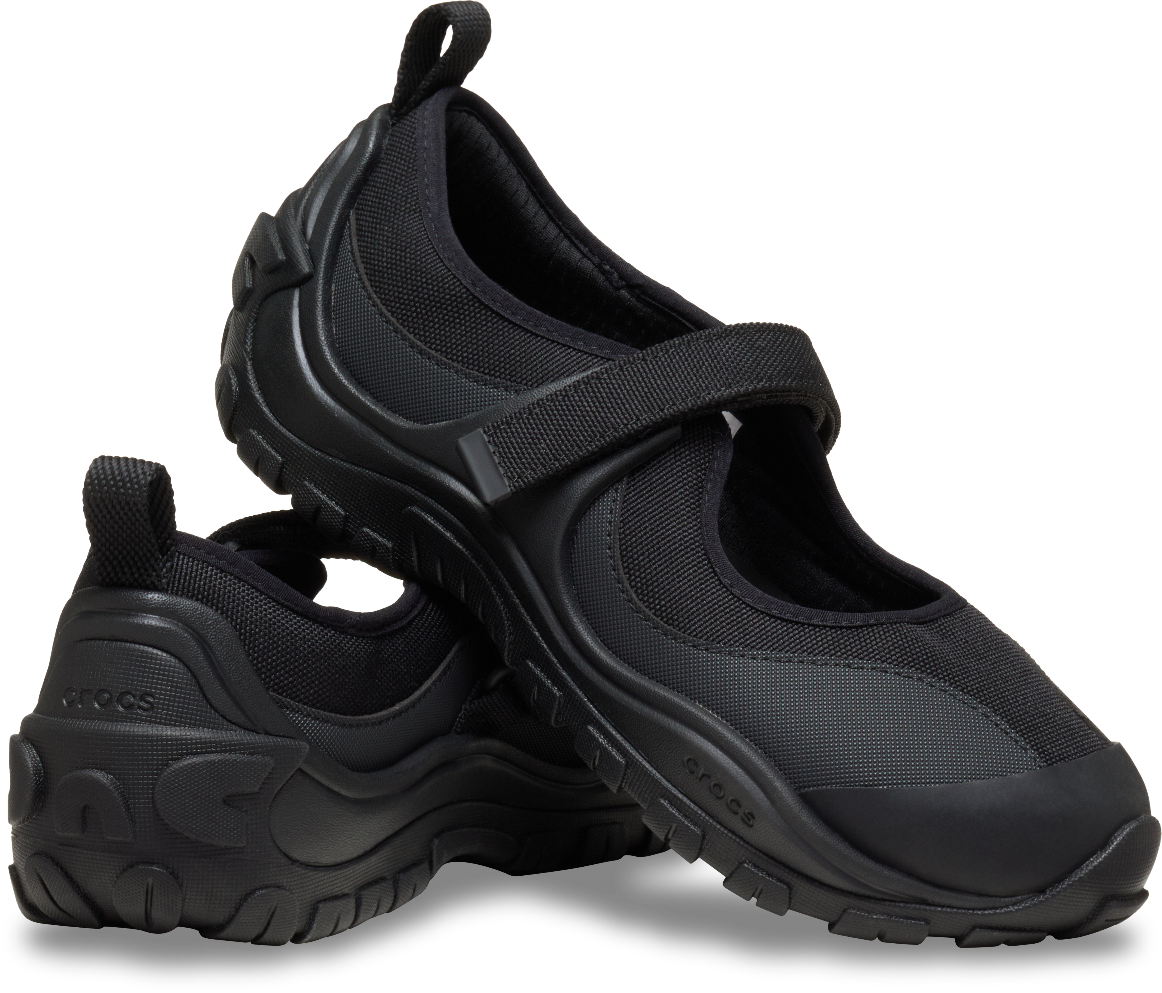 Slip into style with Crocs Terre. These Mary Janes feature a sleek black on black colorway and easy velcro straps for a secure fit. Perfect for a casually chic look.