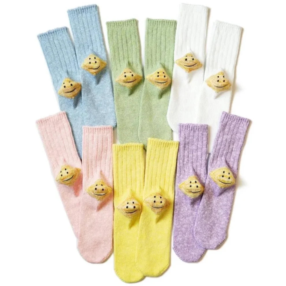 Pale-toned ribbed socks. Rainbowy Smile design on the heel.*This product has threads coming out from the seams between the patterns, but this is due to the characteristics of the knitting and is not a product defect.73% Cotton, 15% Hemp, 12% Acrylic