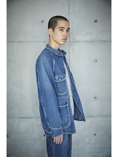 This model is inspired by the coveralls that were popular as workwear in America since the early 19th century, particularly drawing inspiration from the types around the 1950s. It features craftsmanship that would make any artisan proud, with raglan sleeves, lap seams, and beautifully contoured patch pockets.