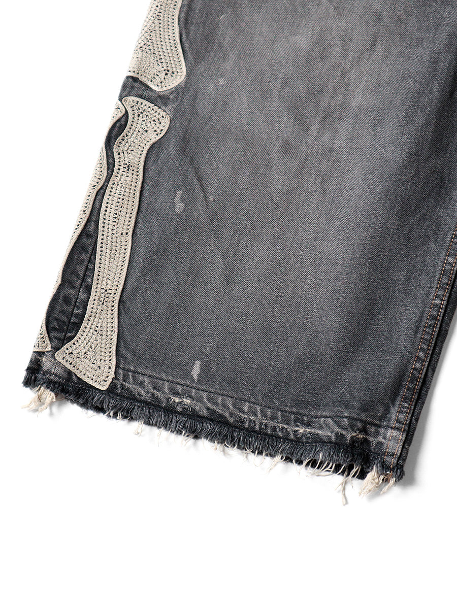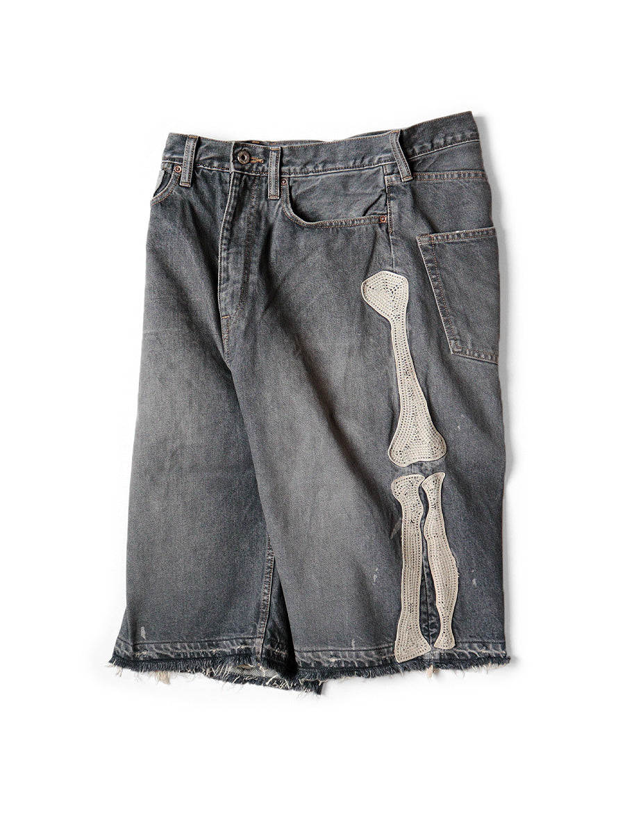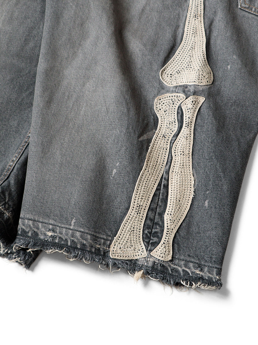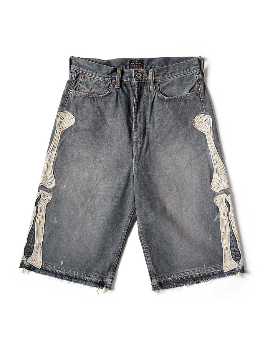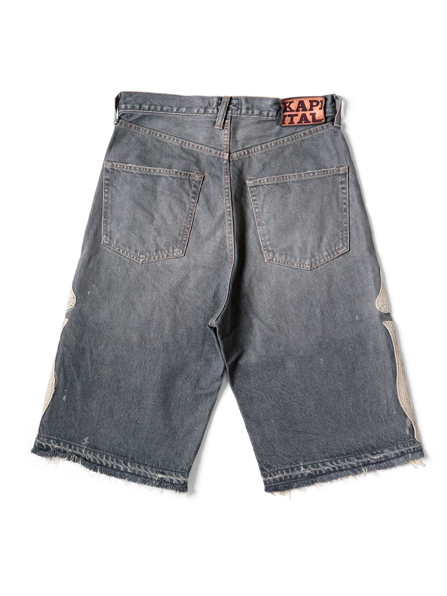 Kapital 14oz Black Denim NOUVELLE Shuttle Shorts - Processed Denim