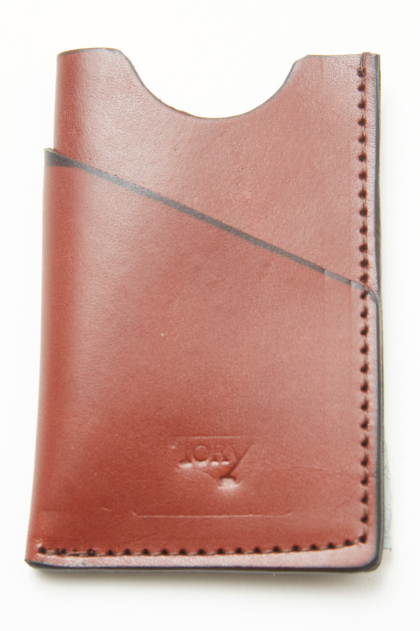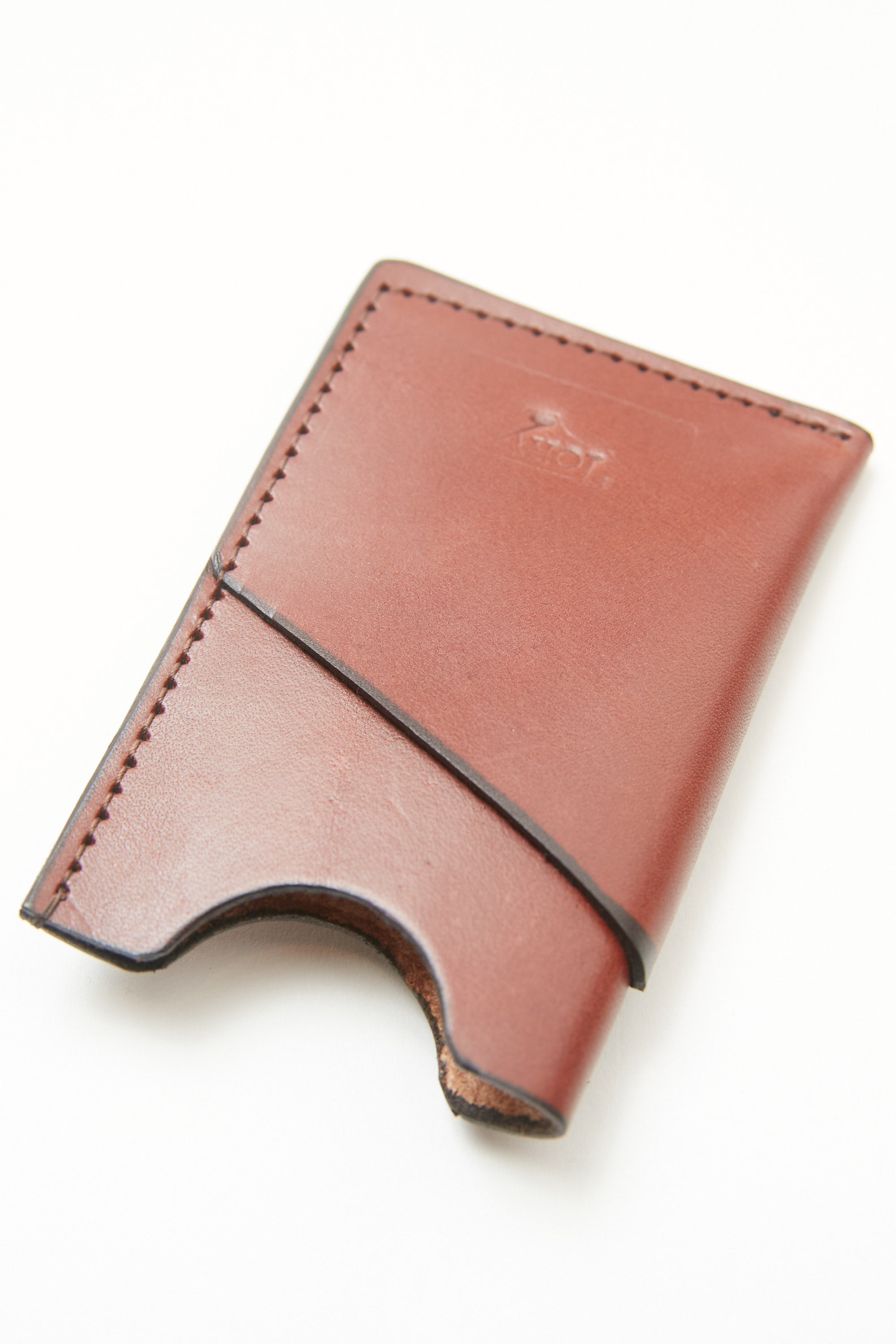 2-7/8” x 4” Bridle Leather with center envelope pocket for cards and vertical card slots on each side