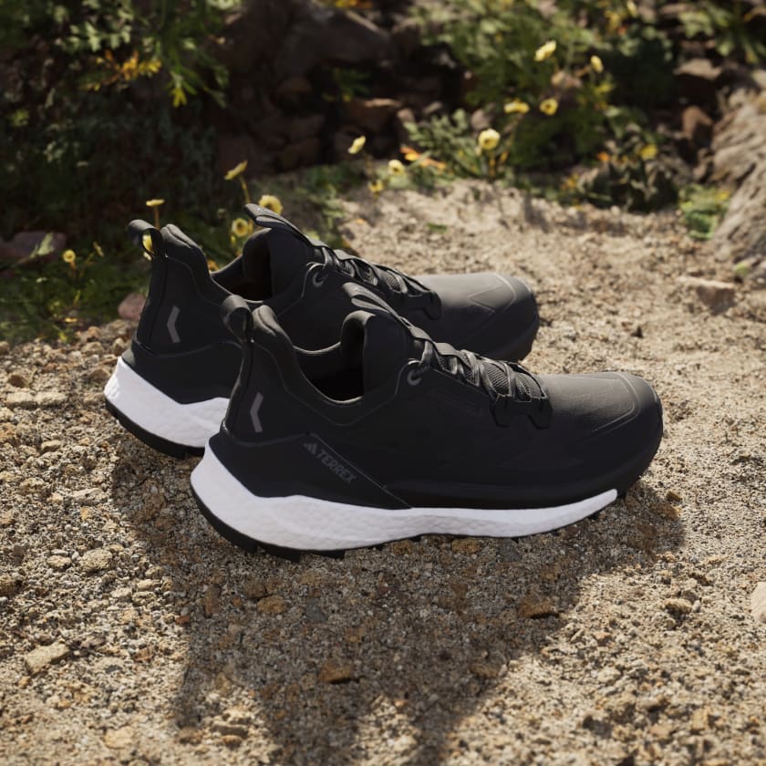 From day hike to multi-day trek, these adidas Terrex Free Hiker 2.0 Low Hiking Shoes support your feet with the lightweight feel of a trail runner and the stability of a hiking boot. A breathable, waterproof upper helps your feet regulate their temperature, and the gusseted tongue construction offers step-in ease and comfort. The BOOST midsole energizes every stride with extra energy and provides all-day comfort. The EVA frame adds stability through rugged, rocky terrain. By choosing recycled, we are able to reuse materials that have already been created, which helps to reduce waste. Renewable materials choices will help us to remove our reliance on finite resources. Our products made with a blend of recycled and renewable materials feature at least 20% total of these materials.
