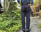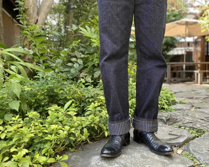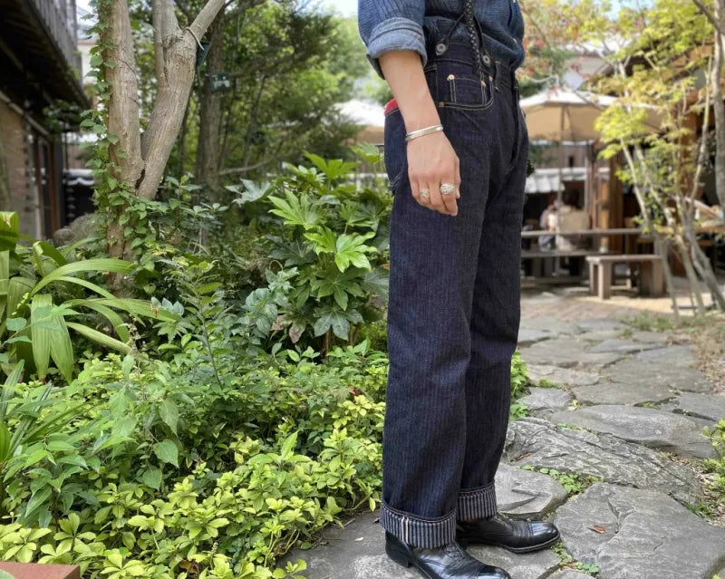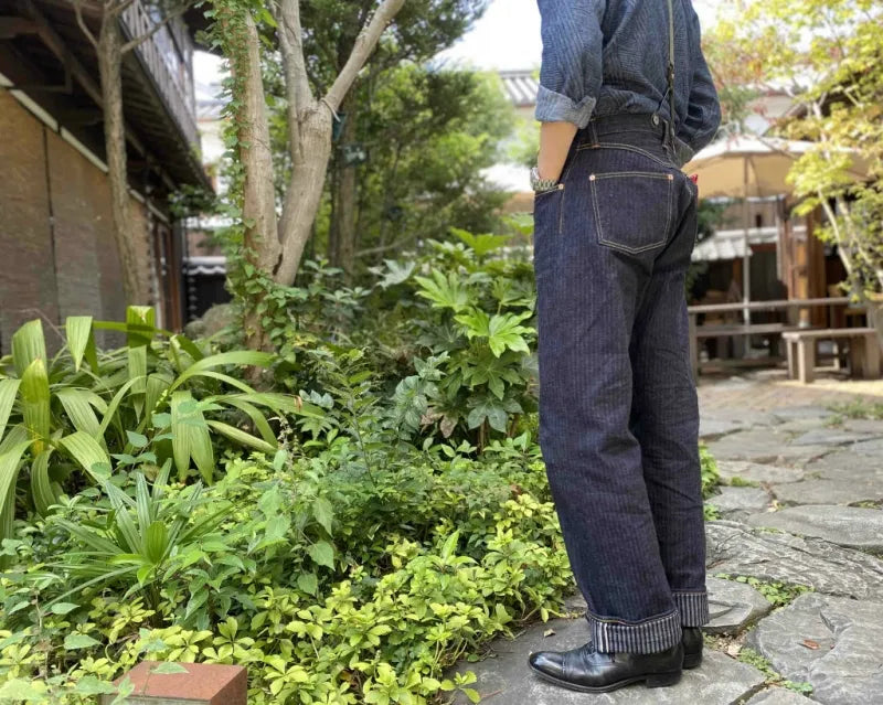 Graph Zero 16oz Loose Straight Pant — Heritage Craft The thickest loose straight in the collection. Raw denim woven on vintage power looms without anti-shrinkage or anti-kink processing, delivering authentic vintage character from day one. Inspired by 1900s workwear, this pair combines heritage details: ducktail silhouette, offset center loop, exposed rivets, and a deep crotch for genuine comfort. The back yoke features a distinctive winding seam, while herringbone pocket bags and back pocket covers add refined texture. Woven with zero tension on original power looms, the signature orange selvage runs the length of the fabric. Every element—from cotton yarn stitching to the 3mm thick nume leather patch—reflects graphzero's commitment to craft. The patch is engraved with "THE ONE AND ONLY TEXTILE" and "JAPAN PRIDE," marking this as a quality statement from skilled artisans. This is raw denim that ages with you. Expect 2–3 cm of stretch around the waist as you wear it. Avoid tumble drying to preserve the fabric's integrity and character. One wash. Sizing based on average measurements; individual variation may occur due to fabric characteristics.