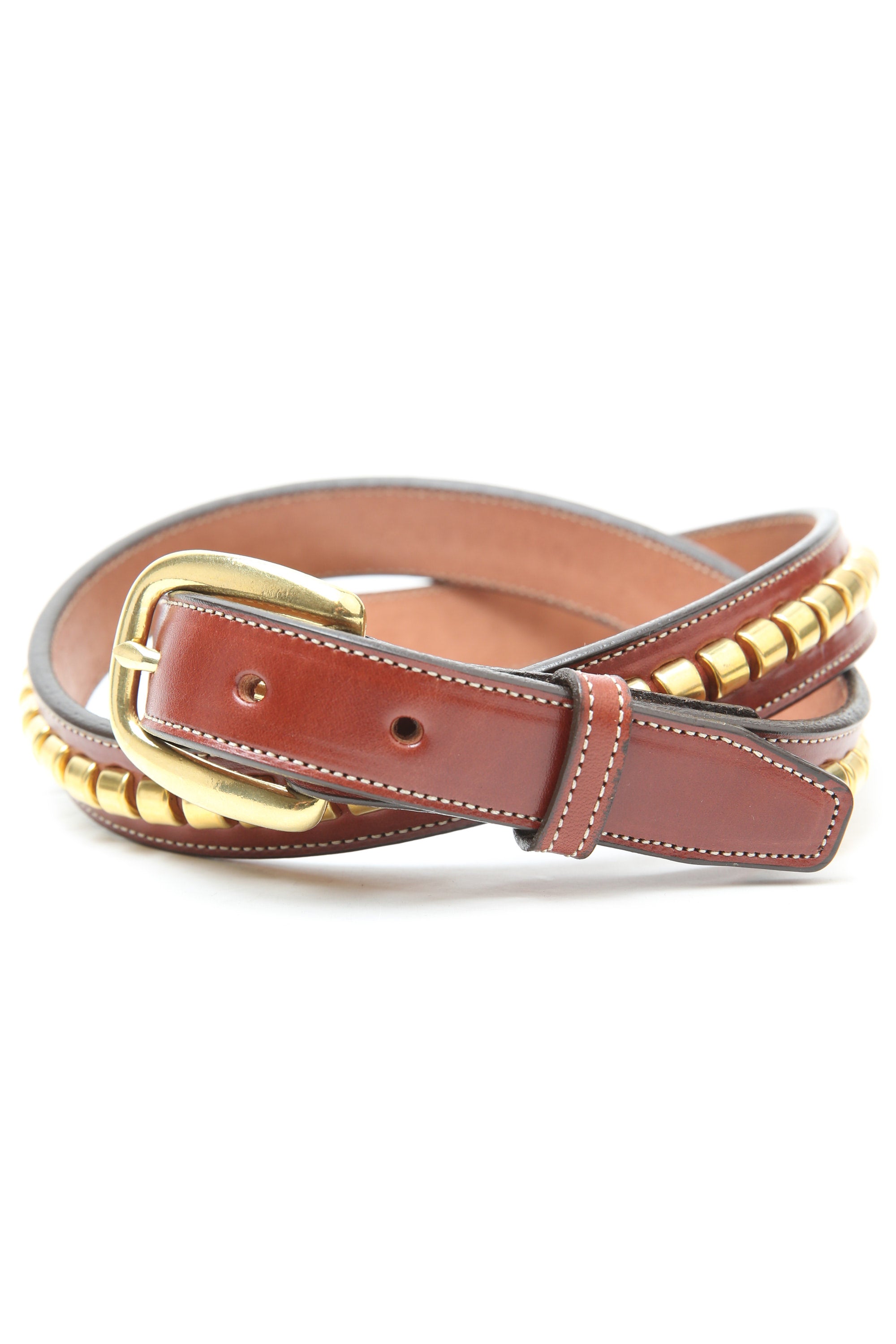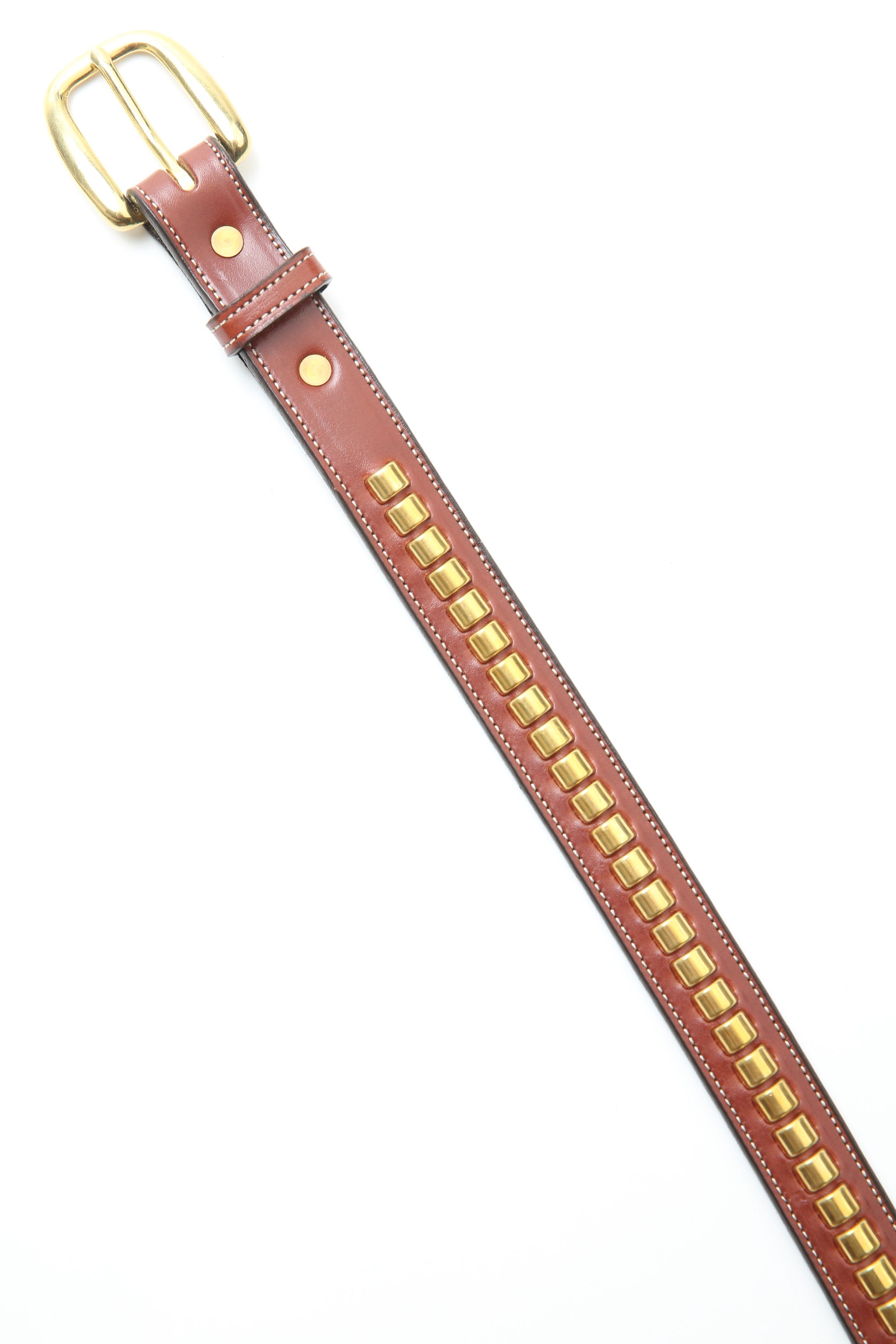 1" Bridle Leather Clincher Belt Featuring metal clinchers down the center. This belt is designed with a snap buckle closure.