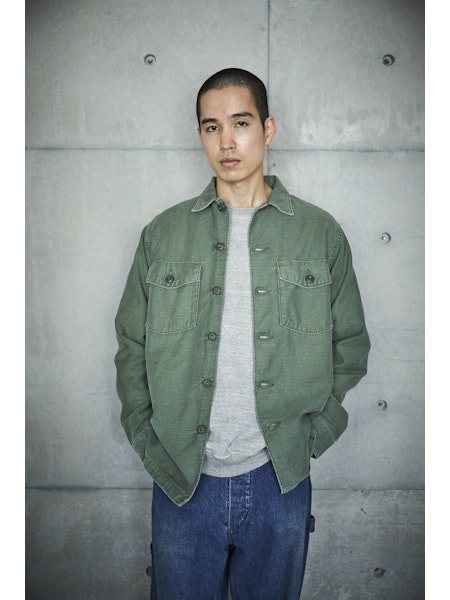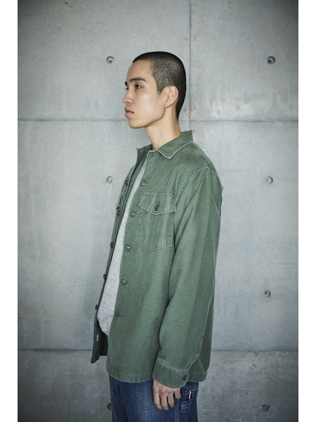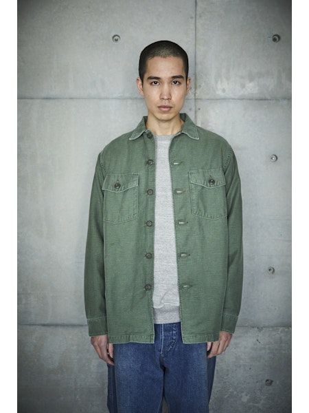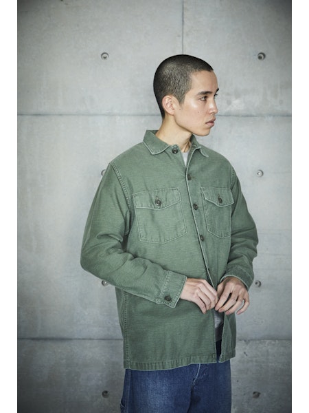 This classic model is created based on the 1960s US Army Utility Shirts. It uses original reverse satin fabric, crafted from the thread stage, giving it a unique appearance that develops color variations and a distinctive patina with repeated washing and wearing. It is a versatile item, perfect for wearing as an outer layer in autumn and spring, and as an inner layer during the winter, making it suitable for year-round use.