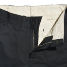 The fabric is a T/C 20/10 twill. These pants are quick drying and wrinkle resistant, and you can enjoy the different stages of texture on these, that ‘new’ feeling when you first get them, and then as they soften and age with time and wear. The details on this one include a folded-back waist which is sewn so that the waist can be adjusted (up to 1” extension) and a diamond gusset on the crotch, making for a more comfortable wear and wider range of motion. We’ve also made one belt loop on the front thinner than the others so you can easily attach your wallet chain or pocket watch, and there is a pocket watch pocket also included on the front right of the pants. The bottom of the pocket bag is double layered for durability, and we’ve used a covered hook at the top of the fly to prevent any scratching. The fit is slim and really easy to wear.
