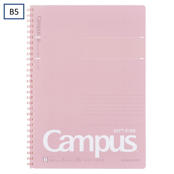 Kokuyo Campus Soft Ring Notebook | B5 - 40 Sheets - 6mm Dotted Line | Pink