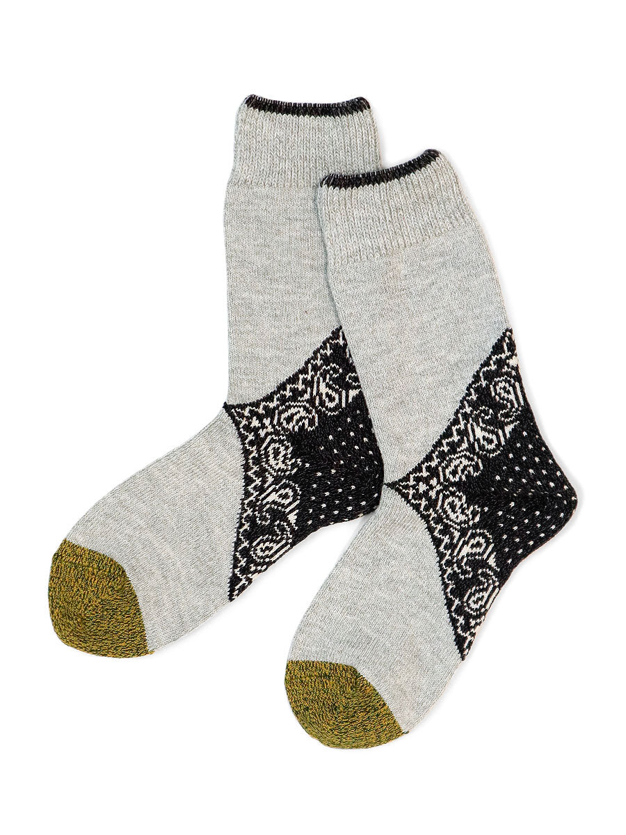 Socks with a paisley pattern on the heel. Comfortable wearing comfort with a stretchy fabric.