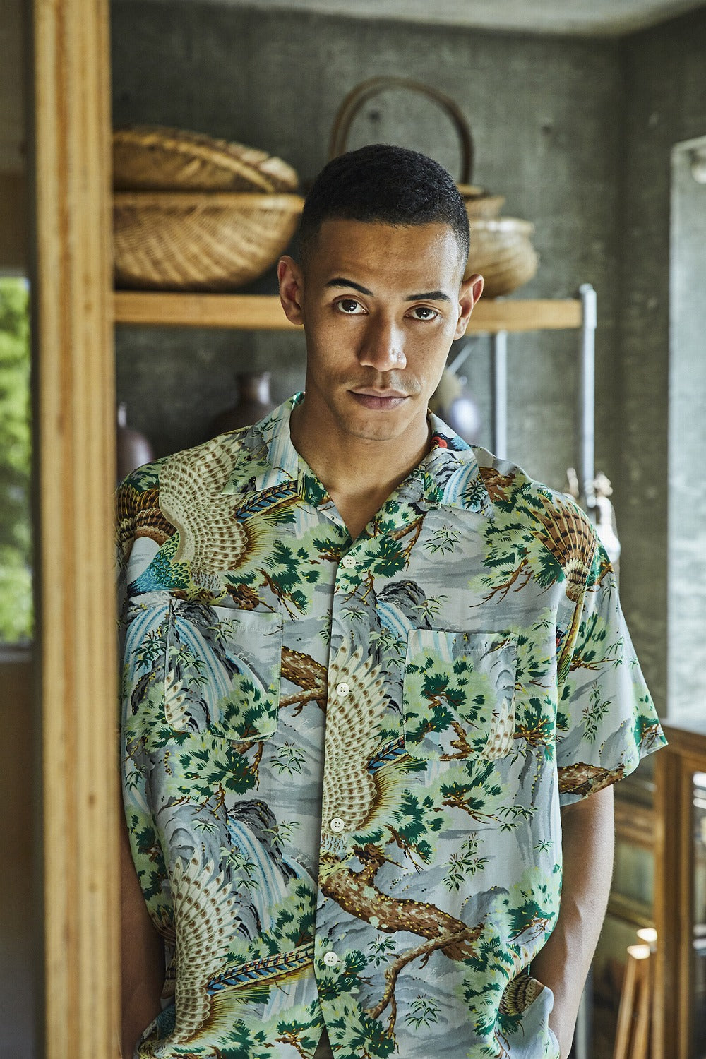 Embrace tropical elegance with this OrSlow Peacock Garden Hawaiian Shirt in rich green. Crafted from 100% breathable rayon and made in Japan, this shirt features a stunning peacock-inspired print that brings vibrant garden aesthetics to your wardrobe. Perfect for warm weather adventures, casual getaways, or making a bold statement. The lightweight rayon fabric ensures comfort and easy movement, while the timeless Hawaiian style offers versatile styling options for any occasion.