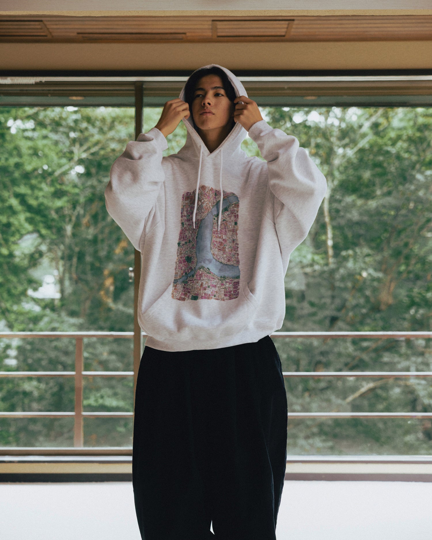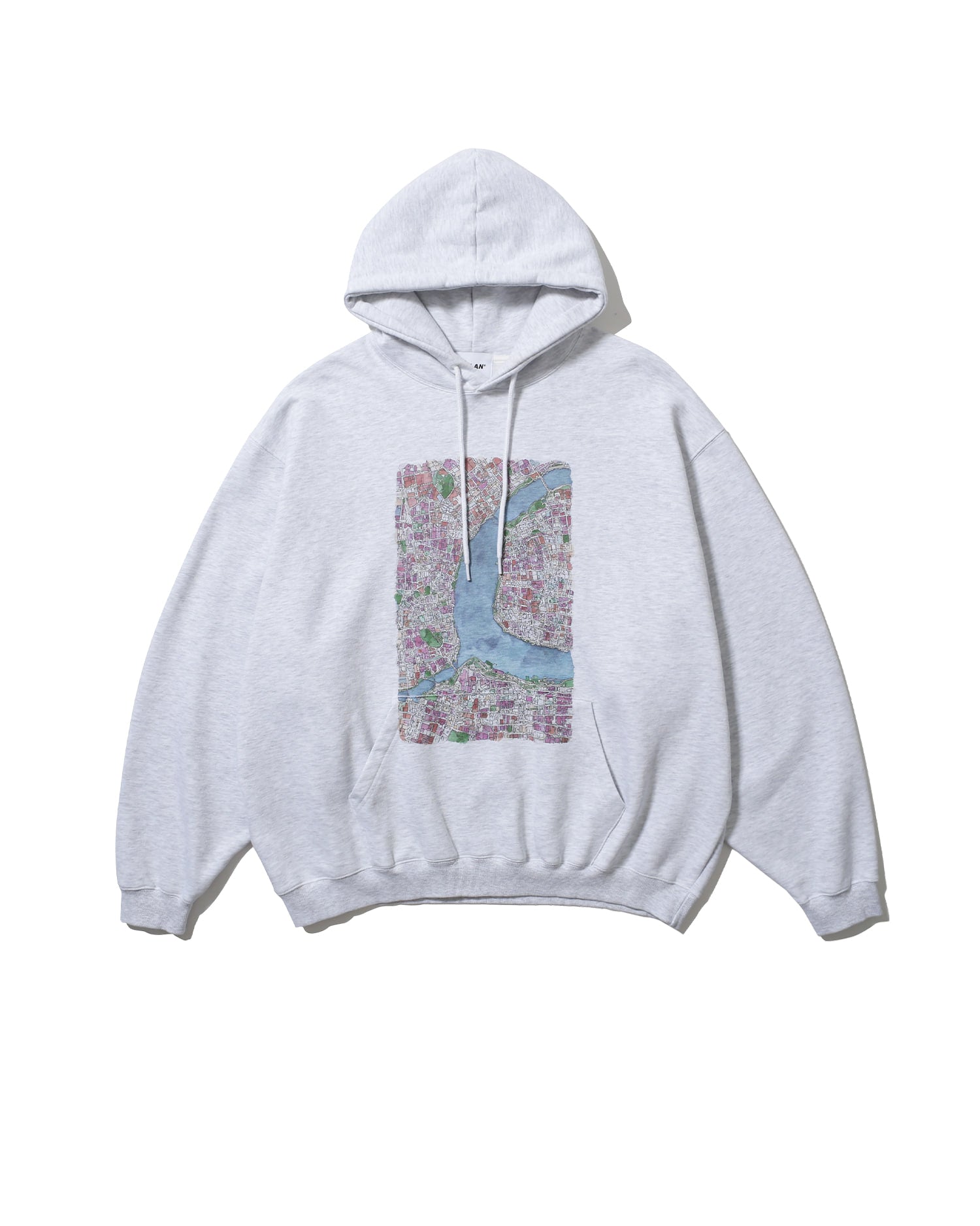 This hoodie is stylishly finished with a Han River graphic on the front. The relaxed silhouette creates a casual yet trendy mood.