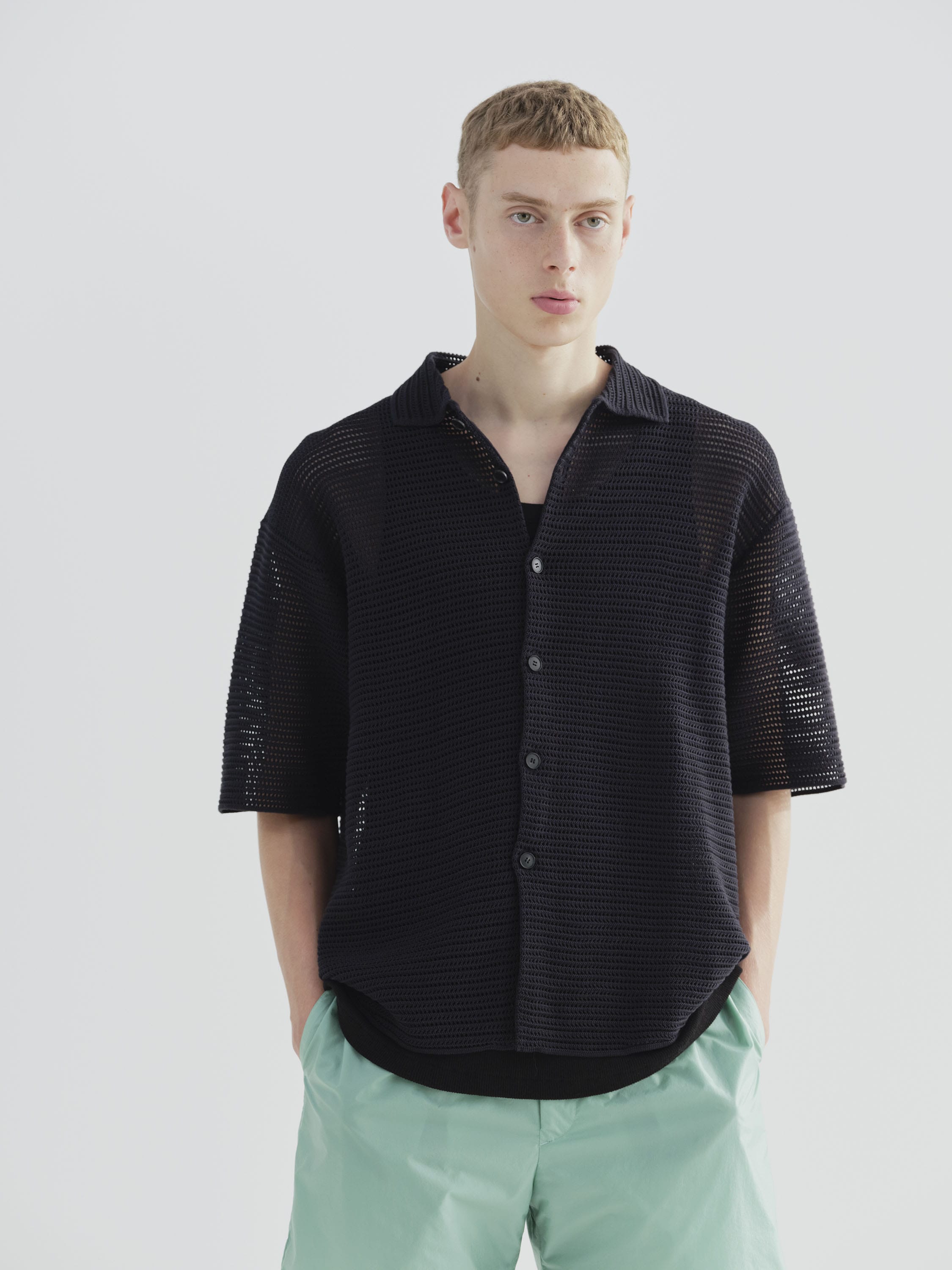 AURALEE Cotton Mesh Knit Half Sleeved Shirt - KHAKI BROWN