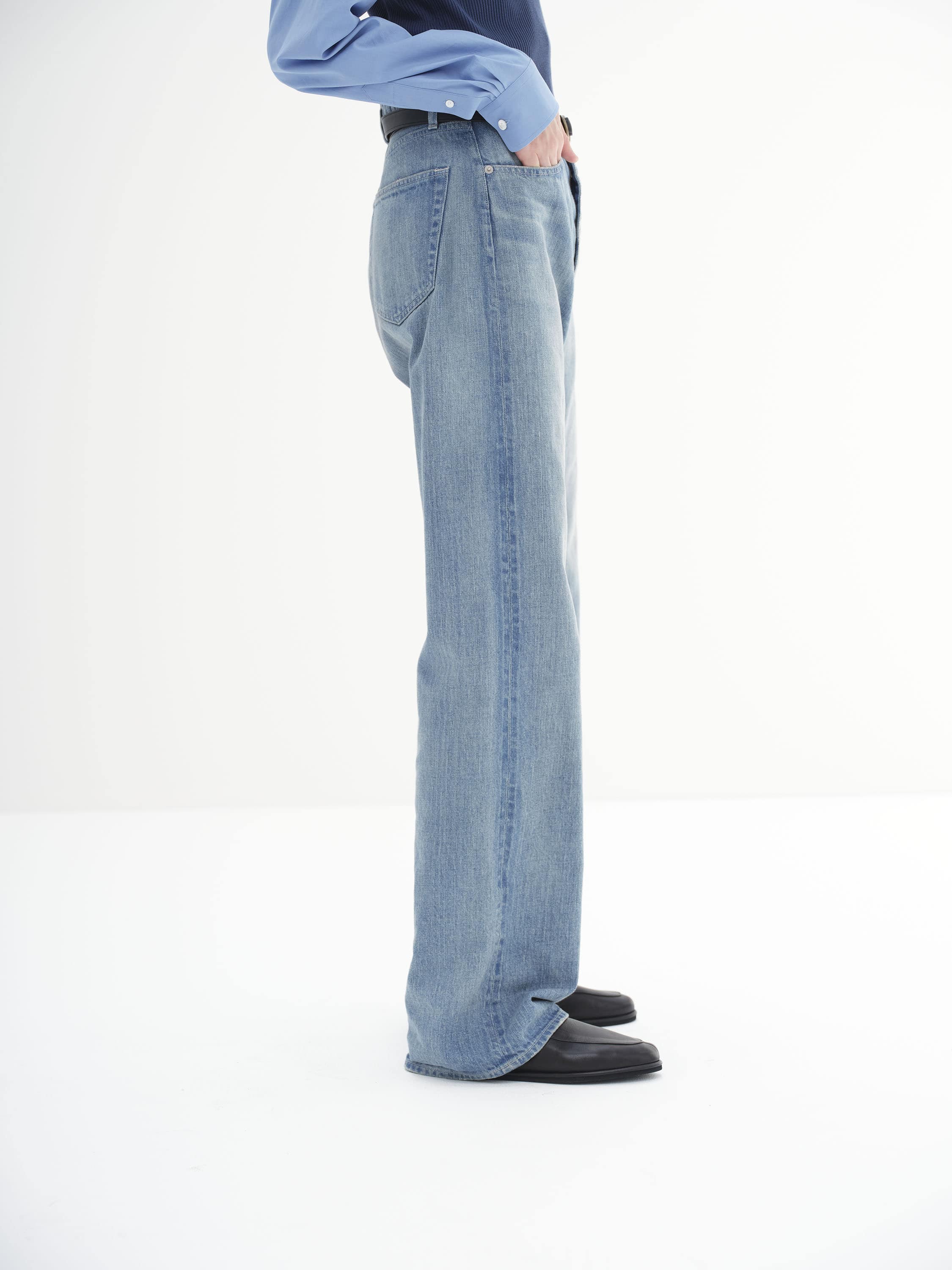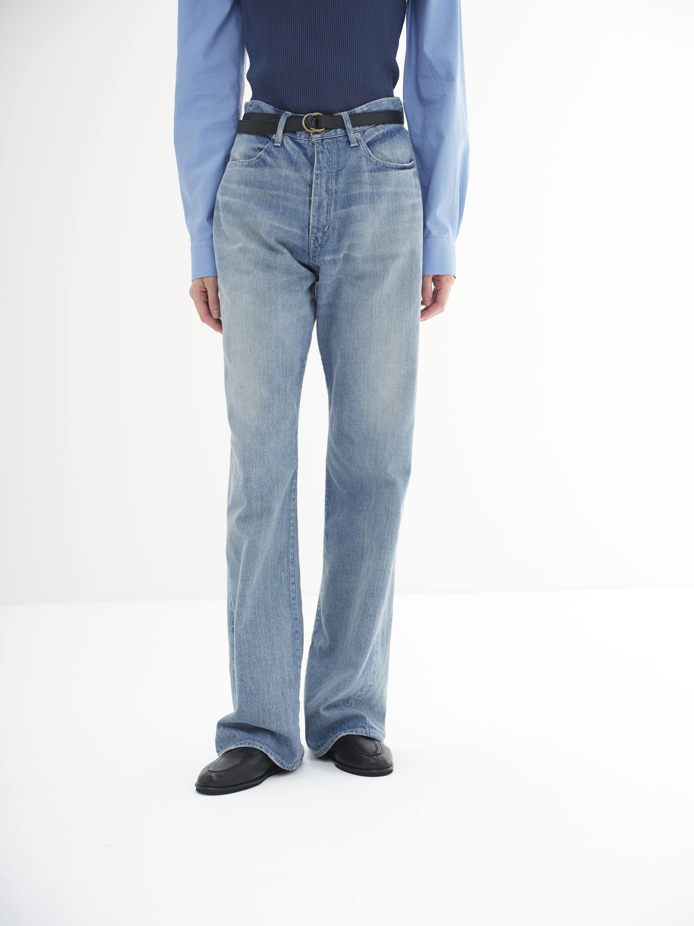 AURALEE Selvedge Faded Light Denim Wide Pants - LIGHT INDIGO
