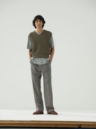 AURALEE Tropical Wool Kid Mohair One-tuck Slacks - GRAY CHECK