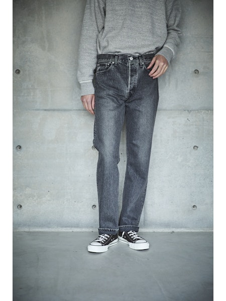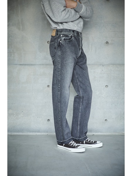These jeans are designed to replicate the unique characteristics of American-made jeans from the 1980s to the 1990s, before the United States began manufacturing jeans in other countries. In the 1980s, denim-weaving technology transitioned from shuttle looms to rapier and Sulzer looms, enabling the efficient production of wide denim fabric with uniform and consistent yarn spinning. During this transitional period, jeans became sturdier and more efficiently produced, maximizing the production process. The way pockets were attached and seams were sewn also changed during this time. Previously, pockets were sewn by hand using cotton thread, but with the introduction of automatic pocket-setter machines, pockets were stitched with robust polyester thread, resulting in a uniform pocket shape. The fabric woven with consistent yarn also had a flatter appearance compared to the previous fabrics, contributing to the distinctive look of jeans from this era. orslow 105W has successfully recreated the jeans from the 1990s, capturing the essence of that period.