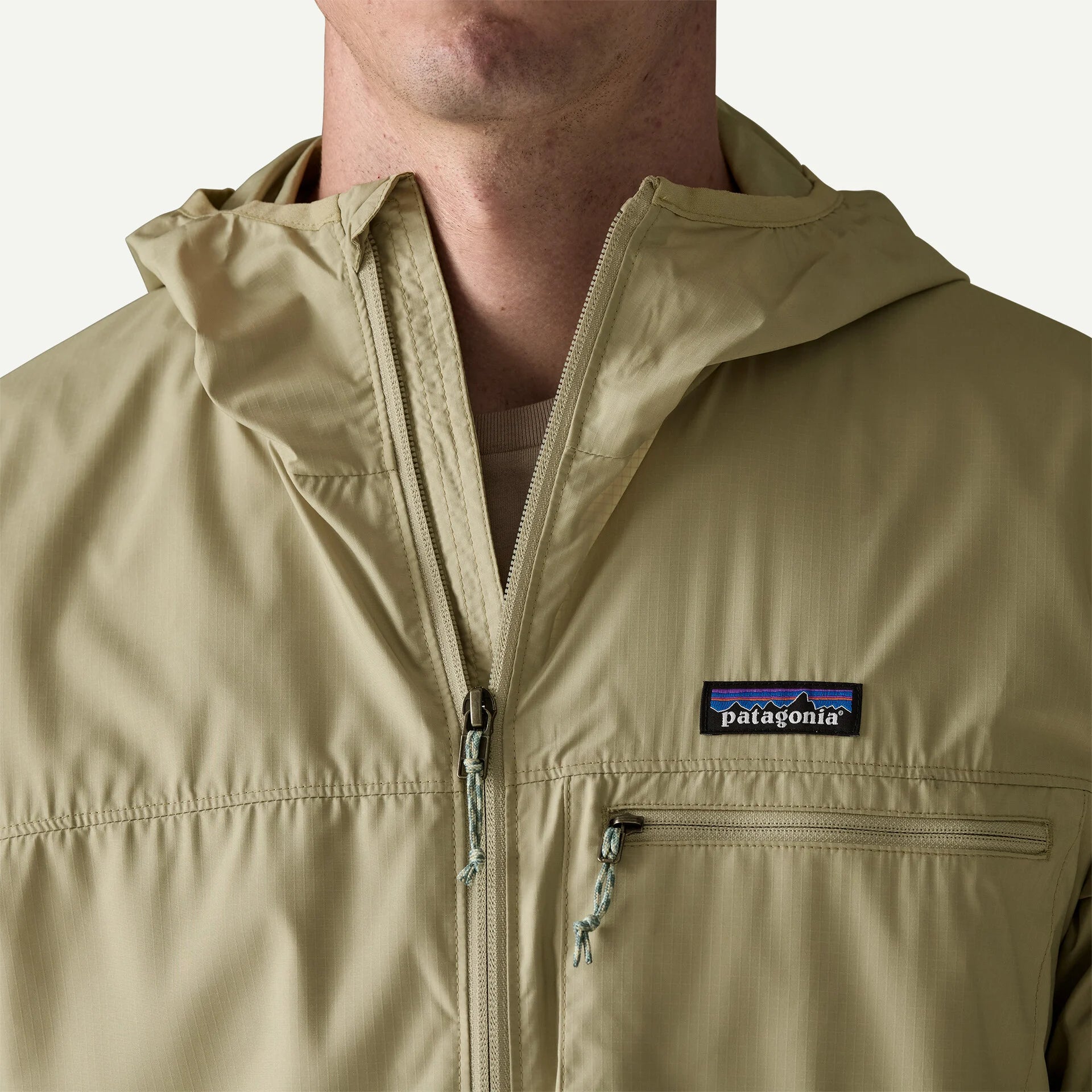 Zippered left-chest pocket doubles as a stow pocket so the jacket can be easily tucked into a pack when not in use