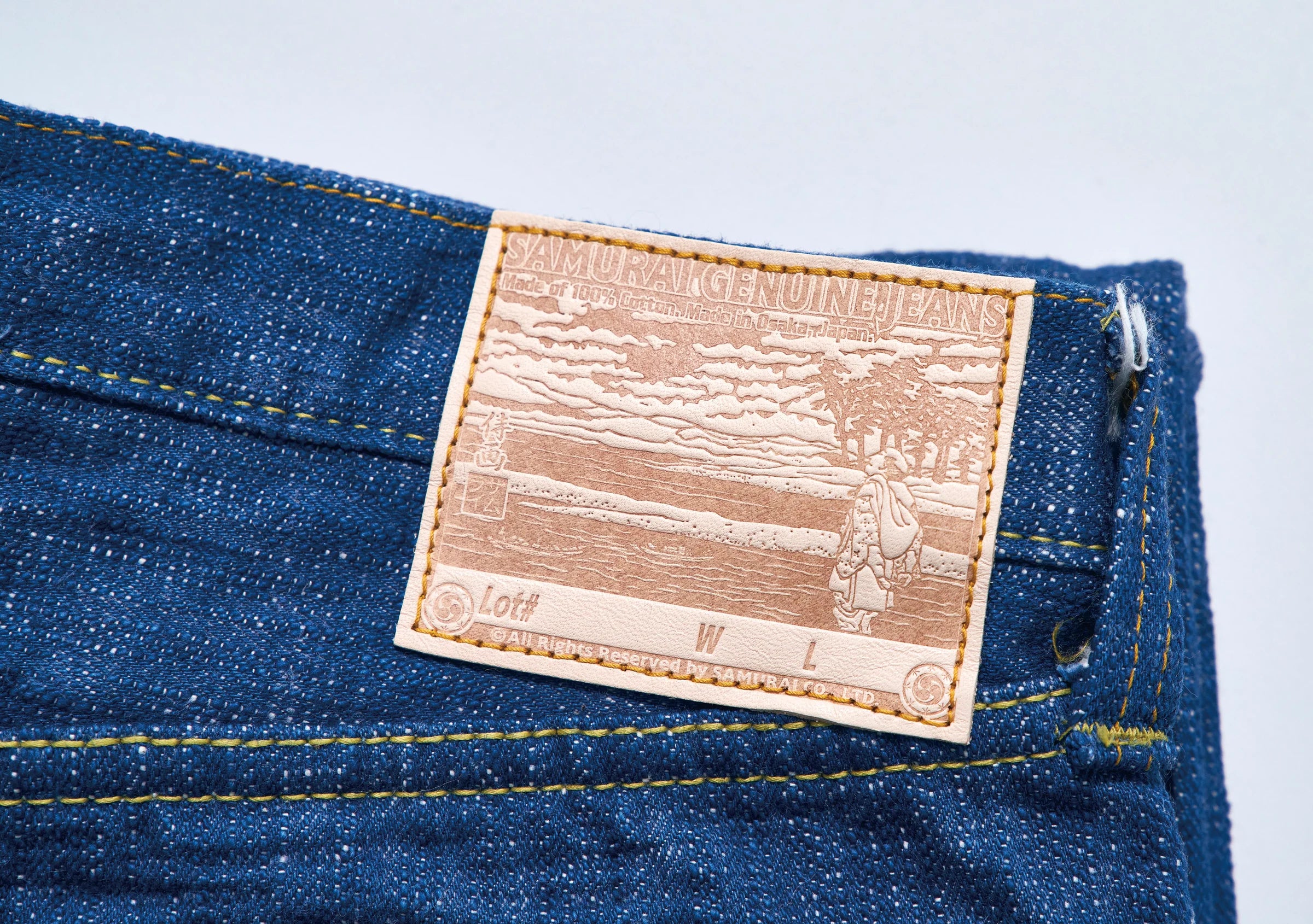 Spec: 17oz EXTRA SLUB MURAKUMO SELVEDGE / INDIGO ROPE DYE / JACQUARD LINING / IRON MADE RISING-SUN BUTTON / COPPER RIVETS / COW LETHER PATCH / MID RISE / SLIM STRAIGHT / MADE IN JAPAN / LENGTH 36inch