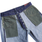 Relaxed straight cut with a roomy rise and hips, created as a tribute to jeans from the WWII era. To get the look and feel just right we researched not only the cotton yarns of that time, but also details such as thread thickness, unique thread colors, period-correct stitch width, etc., then adding our own Samurai magic to the mix. The denim comes in at 15oz and is made of Texas cotton spun into slubby #6 threads. Although this denim is relatively light compared to other Samurai denim types, the hard texture and roughness of the fabric has made it a favorite of many denim fans. Taking into account the specs found on jeans at the time, we went with several unique details such as olive-colored herringbone pocket bags as well as leaving some of the uncut portions of fabric as is (normally these parts are trimmed or removed on modern jeans).