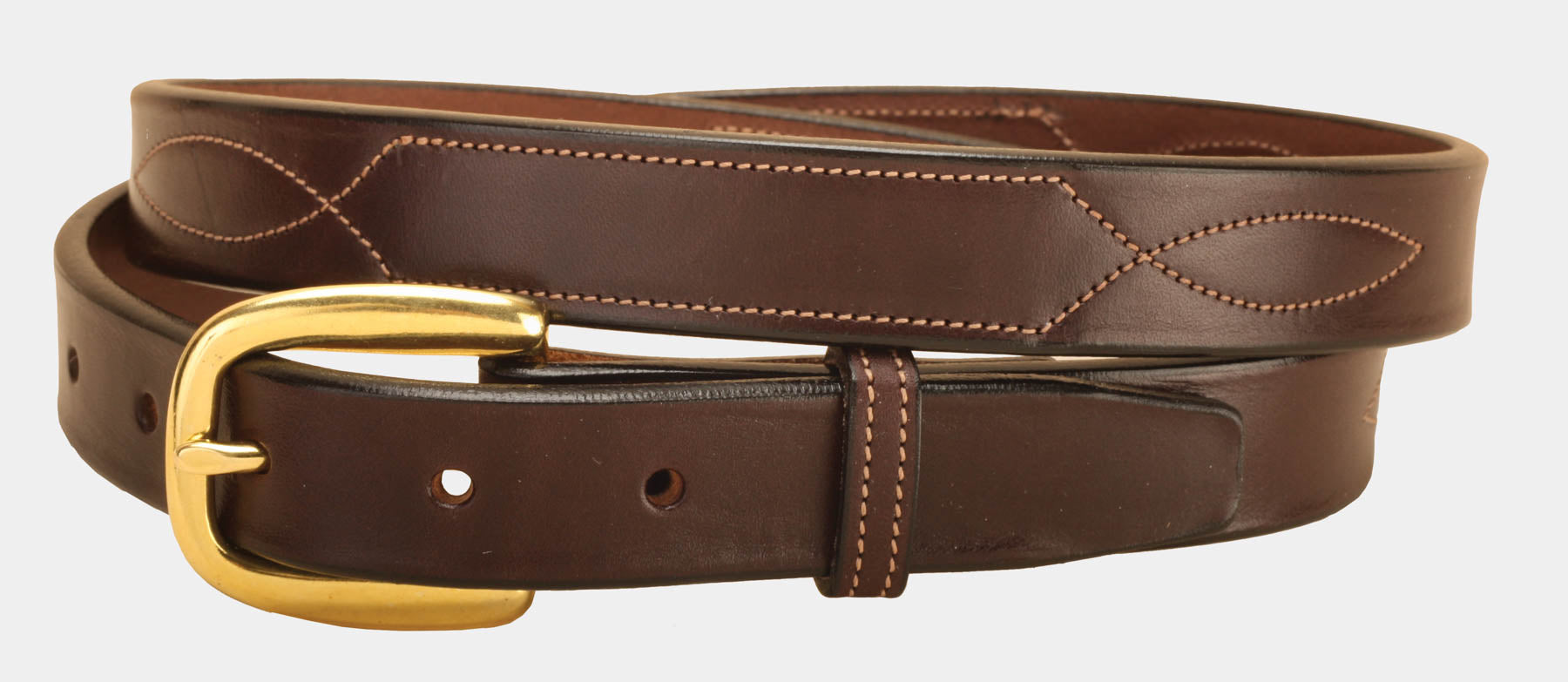 Tory Leather 1" 3 Times Repeated Stitched Pattern Belt (2332) - Havana