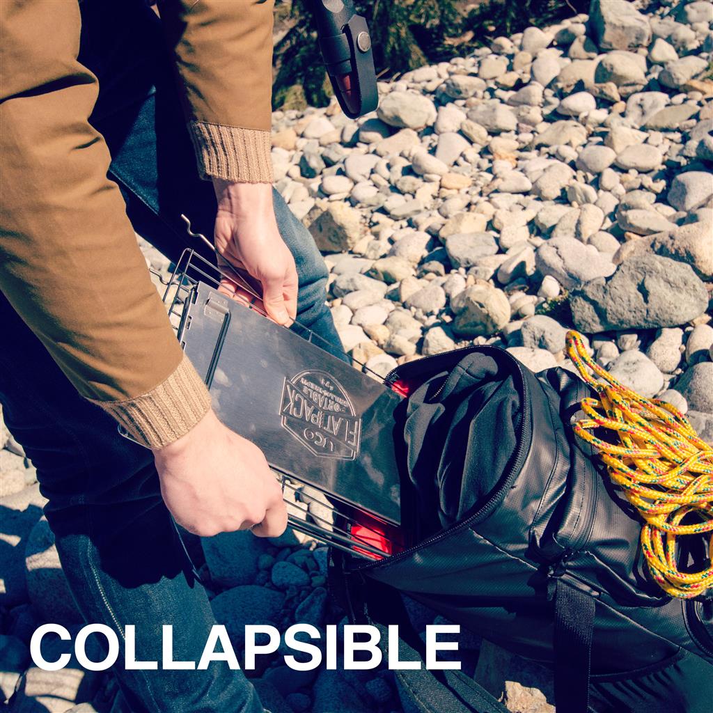 The Flatpack portable grill & firepit packs compact for easy transportation to the beach, campsite or barbeque. It's constructed of stainless steel for durability and easy maintenance. After a quick 30 second set-up, you're ready to go. All you need to do to set up this grill is unfold it and place the grates on top. It has a stable base for safe grilling and the sides serve as wind breaks for grilling in windy conditions. It can also be used as a firepit, to help you leave no trace.